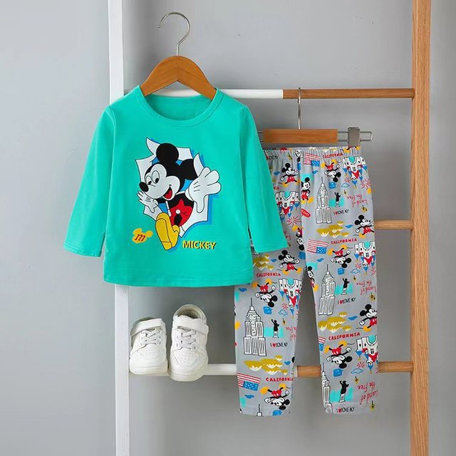Комплект одежды для маленьких мальчиков 0-3 лет, Осенний Женский Топ с длинным рукавом и Мультяшные штаны, наряды