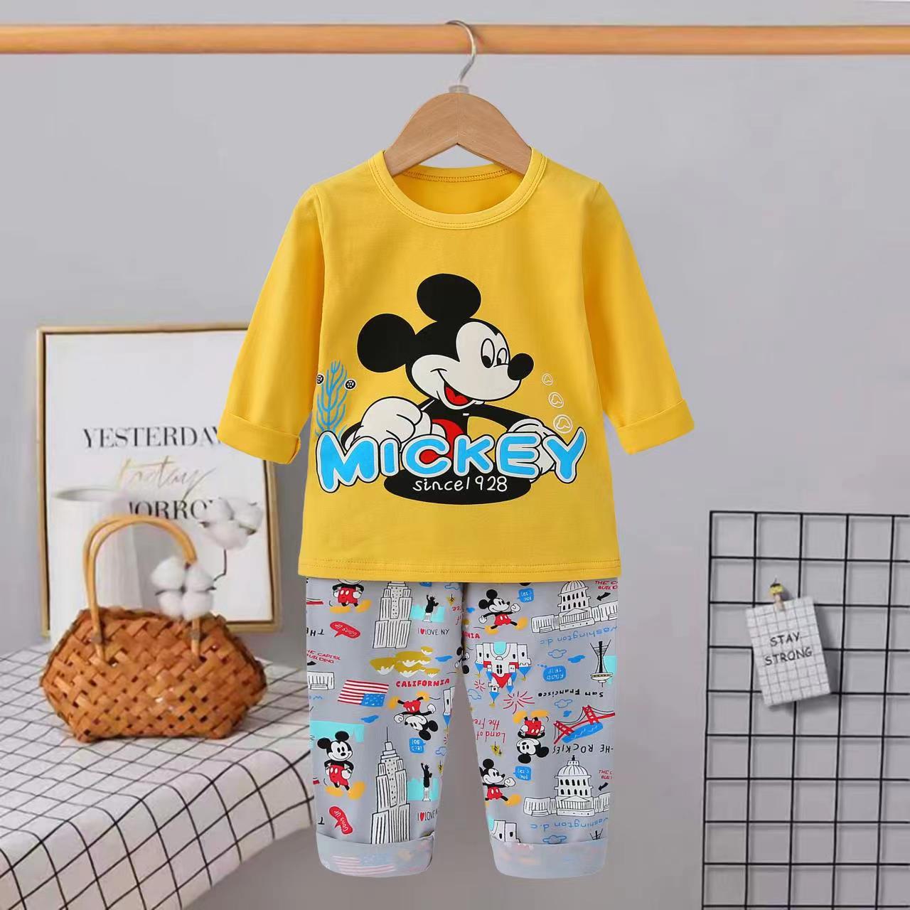 Комплект одежды для маленьких мальчиков 0-3 лет, Осенний Женский Топ с длинным рукавом и Мультяшные штаны, наряды