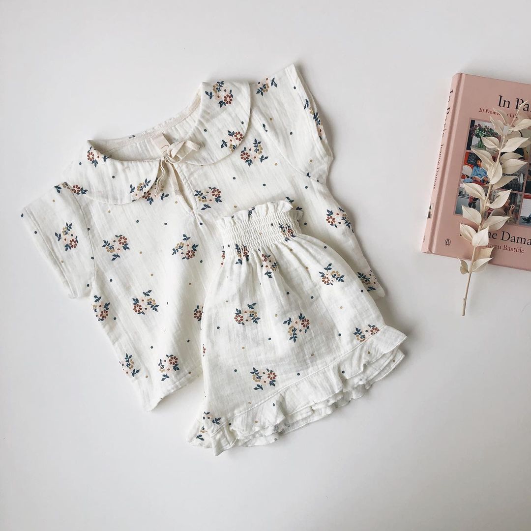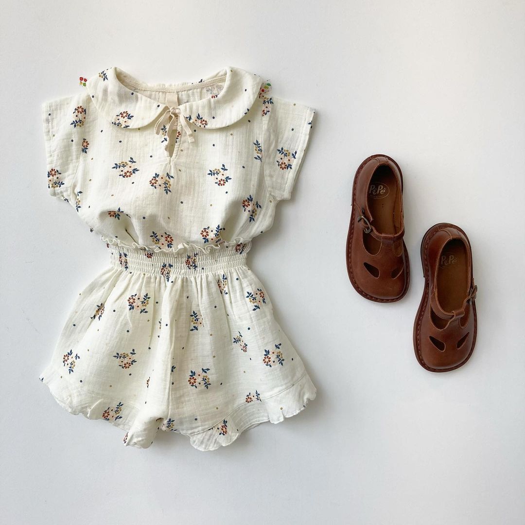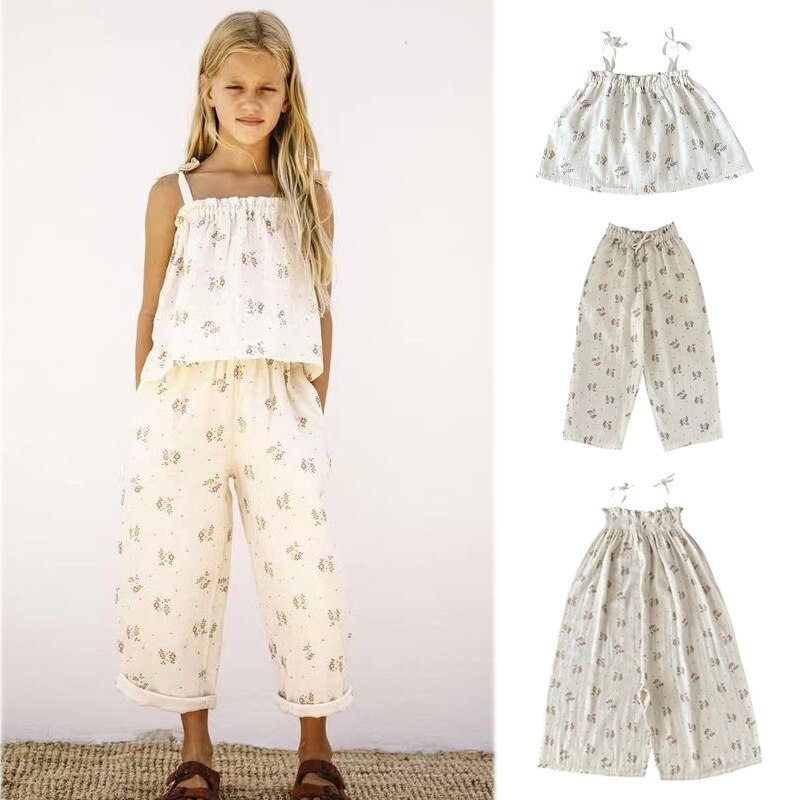 Комплект одежды Liilu для маленьких девочек, брендовая Новая летняя блузка с коротким рукавом и цветочным принтом, модные штаны для малышей, верхняя одежда
