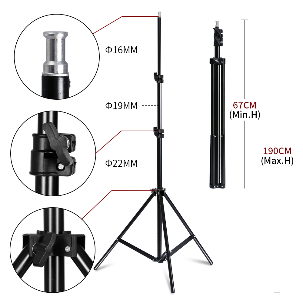 2xSupport Light Stand: световой штатив 2M, регулируемая высота (мин. 79 см-макс. 200 см), стабильный и прочный.
