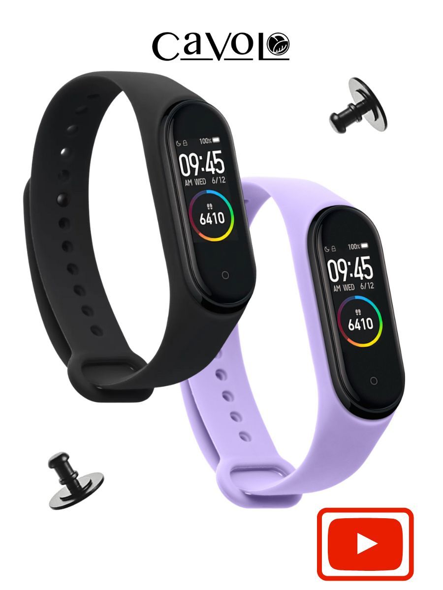 Комплект ремешков для Xiaomi Mi Band 3, Mi Band 4 (Ксиоми Ми Бенд 3/4) + 2 дополнительные кнопки, черный и фиолетовый, Cavolo