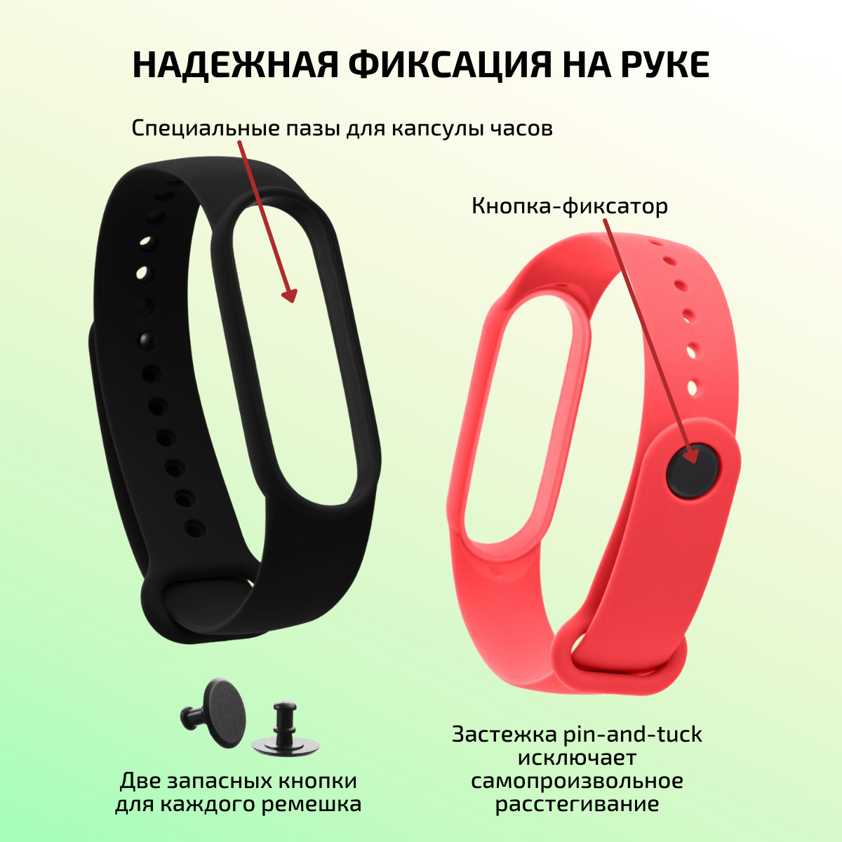 Описание: Комплект ремешков для Xiaomi Mi Band 5 / Mi Band 6 / Mi Band 7, Amazfit Band 5 - лучший выбор для повседневной жизни и занятий спортом!Мягкость и гипоаллергенность силиконового ремешка делают комфортным его круглосуточное ношение.Классический спортивный браслет Cavolo для Mi Band полностью повторяет форму и функционал ремешка, выбранные для инновационного фитнес-браслета Mi производителем.Вставьте капсулу Mi Band в гнездо и наслаждайтесь спортивными занятиями любой интенсивности.Каждый ремешок Cavolo снабжен запасной кнопкой застежки, которую легко установить самостоятельно.Силиконовый ремешок выдерживает нагрузку на растяжение свыше 6 кг. Застежка pin-and-tuck исключает самопроизвольное расстегивание.Ремешок Cavolo весит всего 9 граммов, но обеспечивает надежную фиксацию на руке часов Xiaomi Ми Банд 5,6,7 серий и Амазфит Бенд 5.Силиконовый ремешок для фитнес часов – универсален, и, благодаря широкой палитре цветов подойдет к самым разным образам.