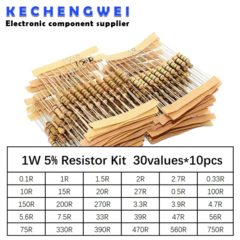 Комплект резисторов 300 шт. 1 Вт 5% 30 значений X 10 шт. углеродная пленка сопротивление 0,1-750 Ом набор
