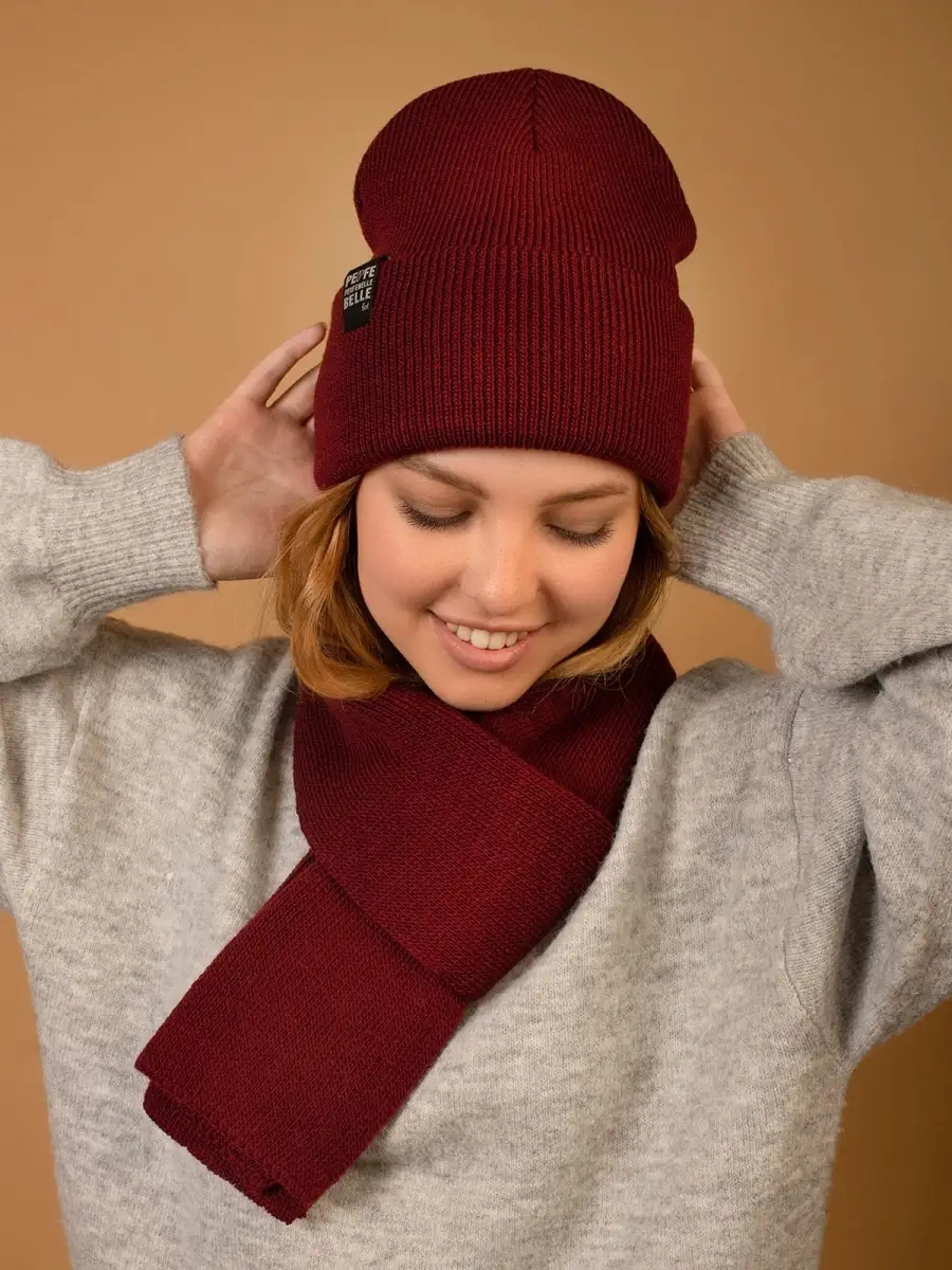 Описание: Тёплый и уютный женский комплект из двойной шапки в спортивном стиле с отворотом и шарфа, идеально сочетающий в себе красоту и комфорт, послужит не только отличной защитой от холода, но и модным аксессуаром для создания стильного повседневного образа. Шапка декорирована биркой с логотипом.