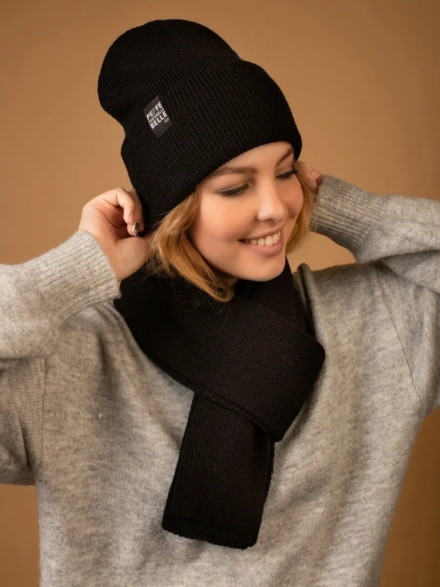 Описание: Тёплый и уютный женский комплект из двойной шапки в спортивном стиле с отворотом и шарфа, идеально сочетающий в себе красоту и комфорт, послужит не только отличной защитой от холода, но и модным аксессуаром для создания стильного повседневного образа. Шапка декорирована биркой с логотипом.