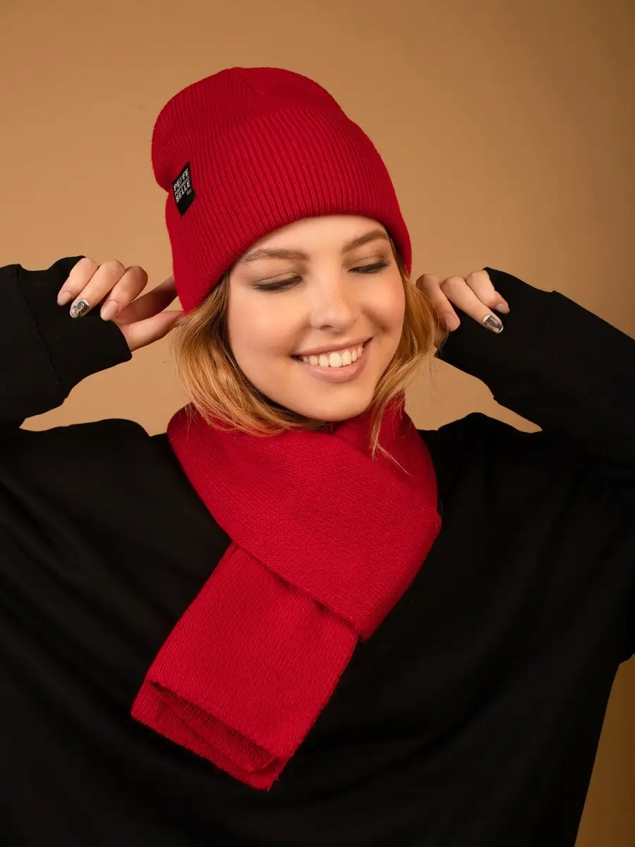 Описание: Тёплый и уютный женский комплект из двойной шапки в спортивном стиле с отворотом и шарфа, идеально сочетающий в себе красоту и комфорт, послужит не только отличной защитой от холода, но и модным аксессуаром для создания стильного повседневного образа. Шапка декорирована биркой с логотипом.