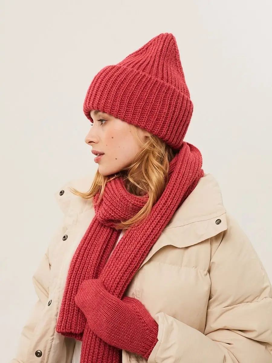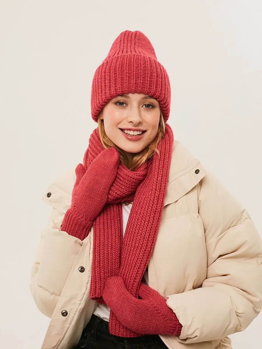 Комплект шапка с шарфом и варежками, бини женская вязаная