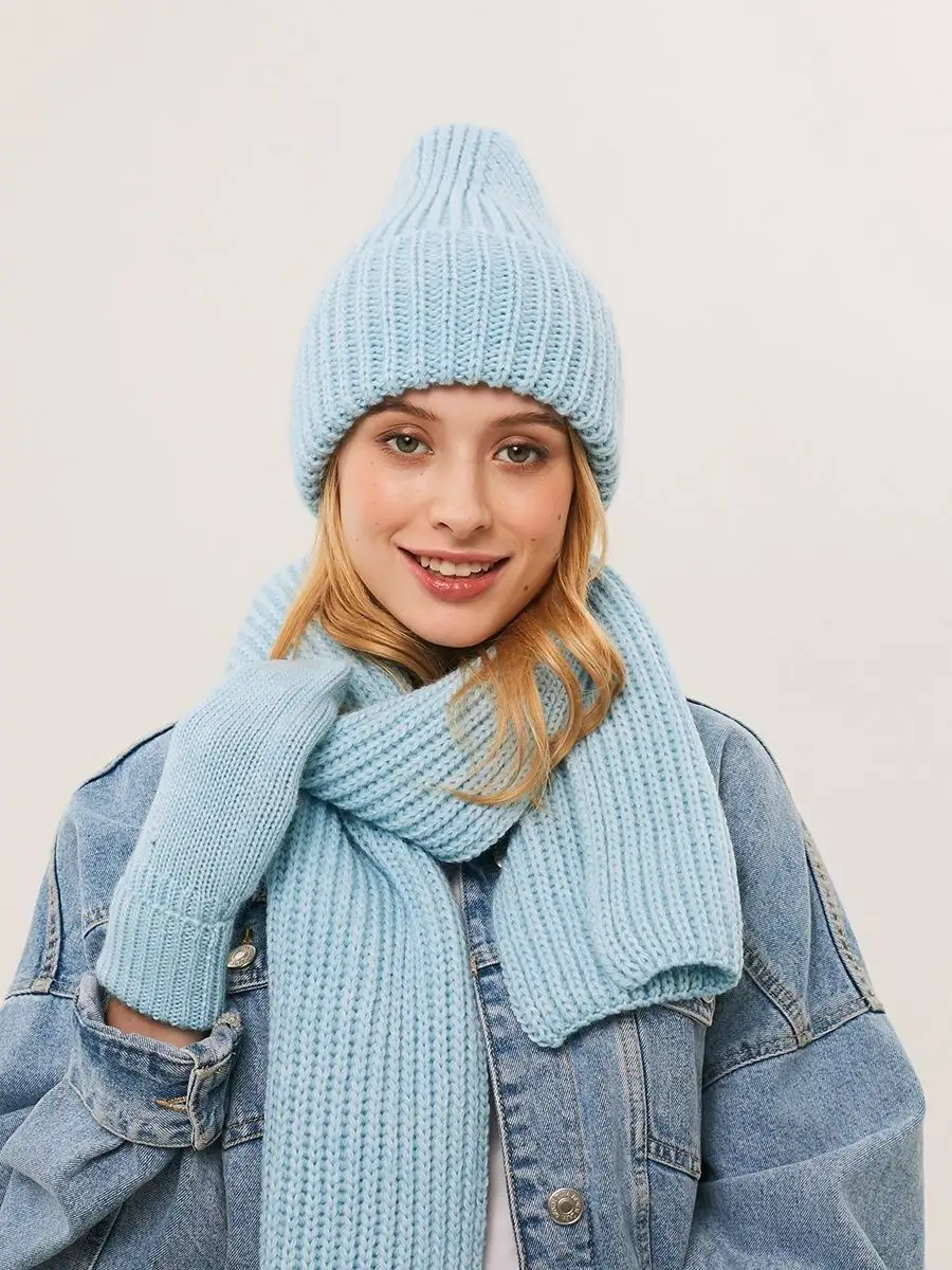 Описание: Теплый зимний комплект, состоящий из трех предметов: шапка женская, шарф и варежки. Женский вязанный комплект будет лучшим решением для Вашего гардероба на осень, зиму и весну, демисезон. Ведь это стильный, качественный, вязанный комплект аксессуаров в базовых цветах, который имеет фактуру - узор лапша. Однослойная шапка женская зимняя с отворотом, сохранит Вашу голову и уши в тепле. Плотные варежки будут греть Ваши руки, а вязанный шарф защитит шею от знойного ветра. Шапка бини прекрасно подходит для любой формы лица, шапочка подчеркнет Ваши достоинства и дополнит любую прическу. Комплект может послужить отличным подарком для Вас и Ваших близких, а также его смело могут носить девочки. Данный комплект можно подарить: любимой бабушке, коллеге, подруге, маме, дочери, сестре. Перед отправкой, все изделия проходят предварительную стирку и последующую обработку паром для того, чтобы изделия были более износоустойчивыми, комфортными и приятными в носке. Длина шарфа 170см, ширина 22см.