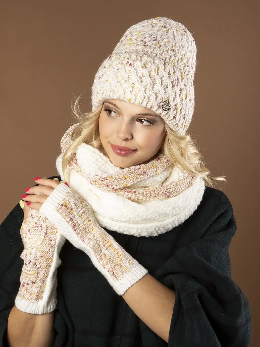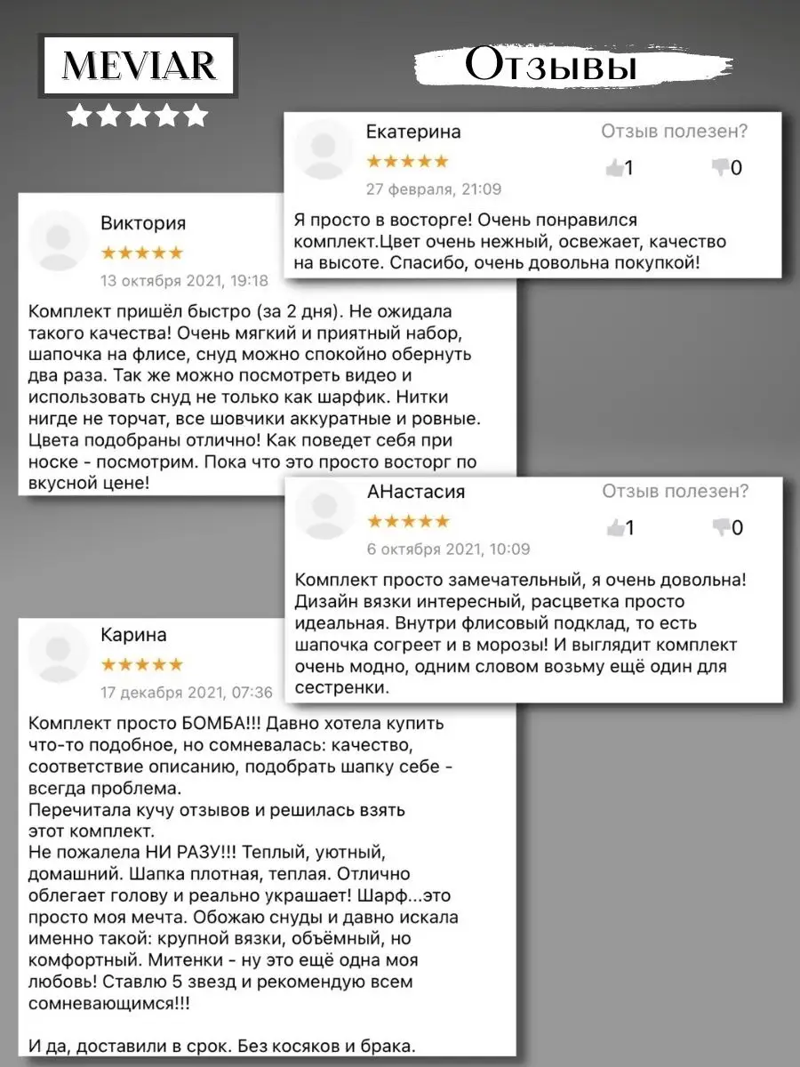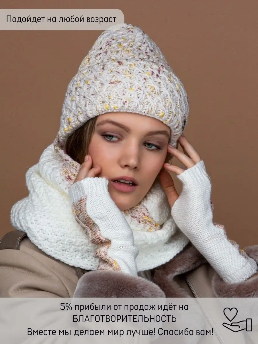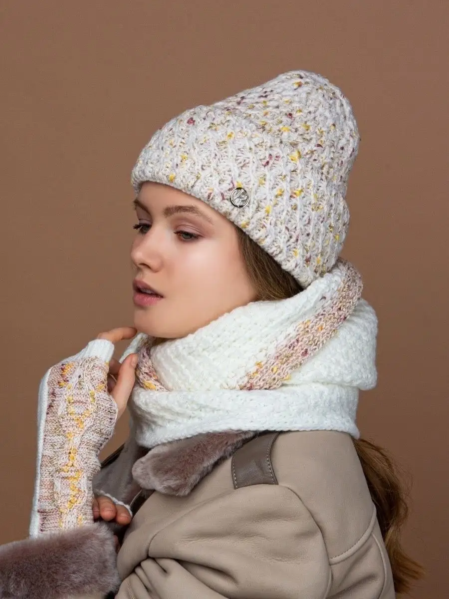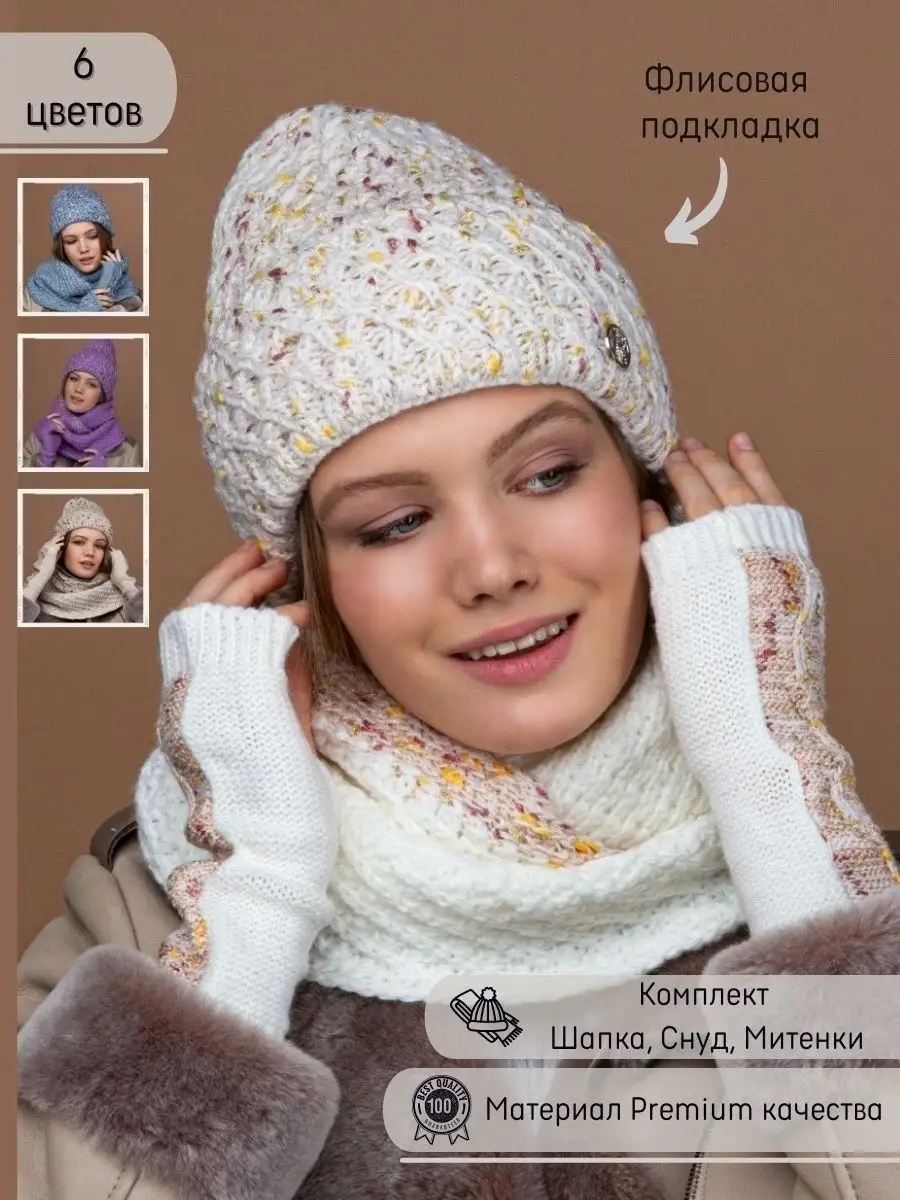 Описание: Зимний вязаный комплект выполнен из высококачественной пряжи на основе акрила гипоаллергенного, что делает комплект тактильно приятным, с наложением блестящей цветной нити. Комплект состоит из объемной шапки, с флисовым подкладом, теплого снуда в два оборота (восьмерка) и стильных, удобных митенок ( перчаток с открытыми пальчиками ), особенно полюбившиеся автоледи, и обеспечивающие непосредственный контакт пальцев с кожей руля, для большей уверенности. Благодаря готовому зимнему набору аксессуаров – шапки, шарфа и перчаток, каждая модница может подчеркнуть свою индивидуальность и стилевые предпочтения. Комплект представлен в едином универсальном размере и подойдет для всех возрастных категорий. Такой комплект послужит отличным подарком маме, подруге, любимой. ------Нас находят по запросам: шапка женская зимняя осенняя весенняя подростковая вязаная на флисе крупной вязки теплая объемная флисовая демисезонная бини модная бинни для девочки для подростка для женщин головной убор с отворотом шарф снуд митенки перчатки варежки комплект женский осень зима весна набор с шарфом женские со снудом с варежками вязанная