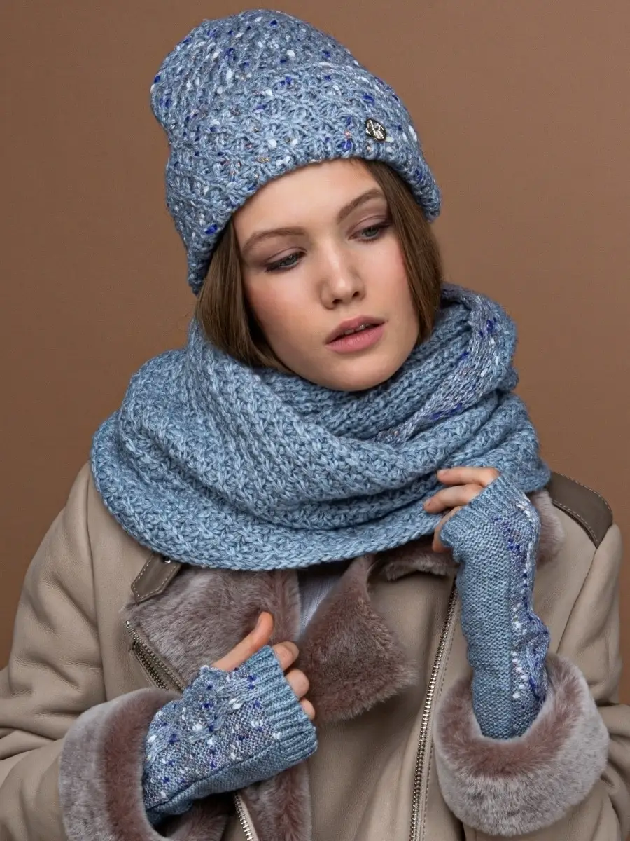 Описание: Зимний вязаный комплект выполнен из высококачественной пряжи на основе акрила гипоаллергенного, что делает комплект тактильно приятным, с наложением блестящей цветной нити. Комплект состоит из объемной шапки, с флисовым подкладом, теплого снуда в два оборота (восьмерка) и стильных, удобных митенок ( перчаток с открытыми пальчиками ), особенно полюбившиеся автоледи, и обеспечивающие непосредственный контакт пальцев с кожей руля, для большей уверенности. Благодаря готовому зимнему набору аксессуаров – шапки, шарфа и перчаток, каждая модница может подчеркнуть свою индивидуальность и стилевые предпочтения. Комплект представлен в едином универсальном размере и подойдет для всех возрастных категорий. Такой комплект послужит отличным подарком маме, подруге, любимой. ------Нас находят по запросам: шапка женская зимняя осенняя весенняя подростковая вязаная на флисе крупной вязки теплая объемная флисовая демисезонная бини модная бинни для девочки для подростка для женщин головной убор с отворотом шарф снуд митенки перчатки варежки комплект женский осень зима весна набор с шарфом женские со снудом с варежками вязанная