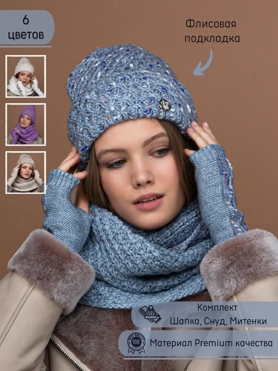 Тип комплекта Шапка + Шарф; шапка и снуд; шапка шарф