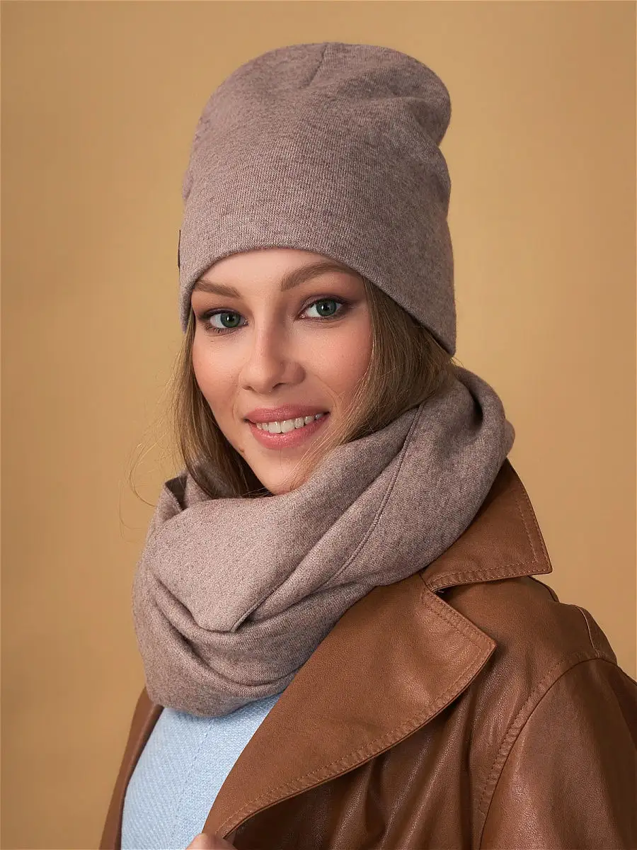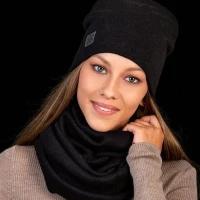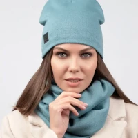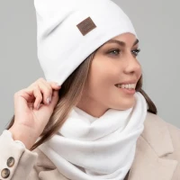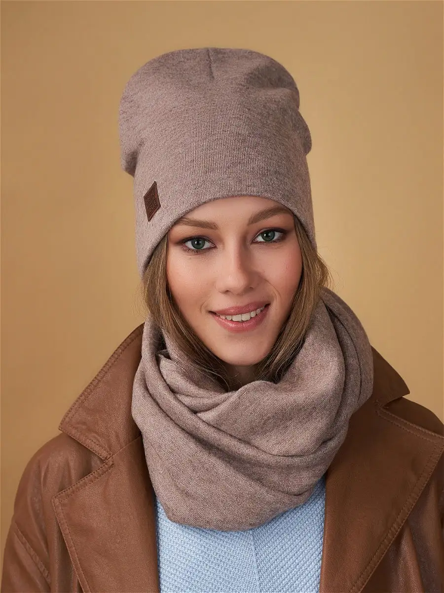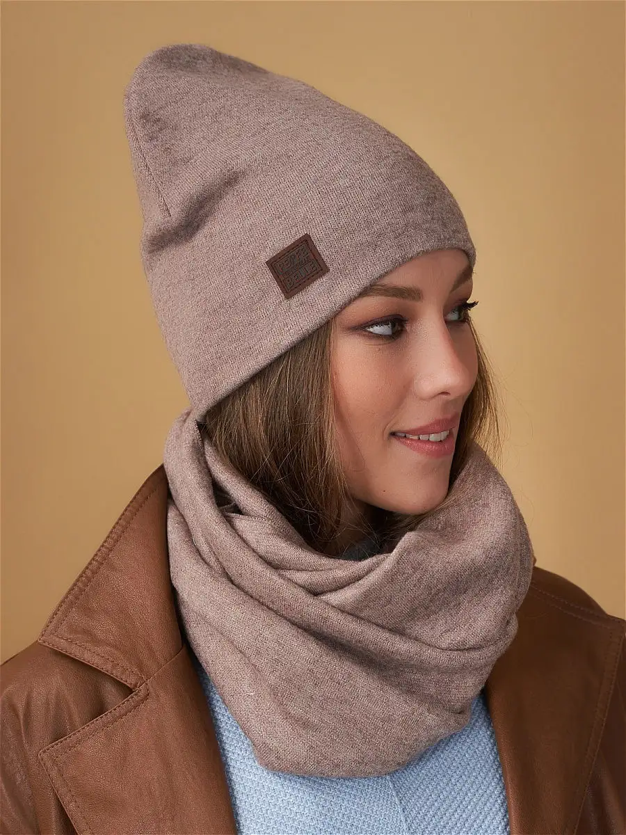 Описание: Теплый и уютный женский комплект из удлиненной шапки и снуда, идеально сочетающий в себе красоту и комфорт, послужит не только отличной защитой от холода, но и модным аксессуаром для создания стильного повседневного образа. Шапка полностью утеплена поларом, декорирована биркой с логотипом.