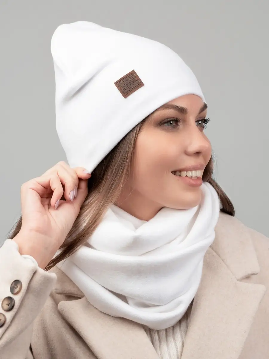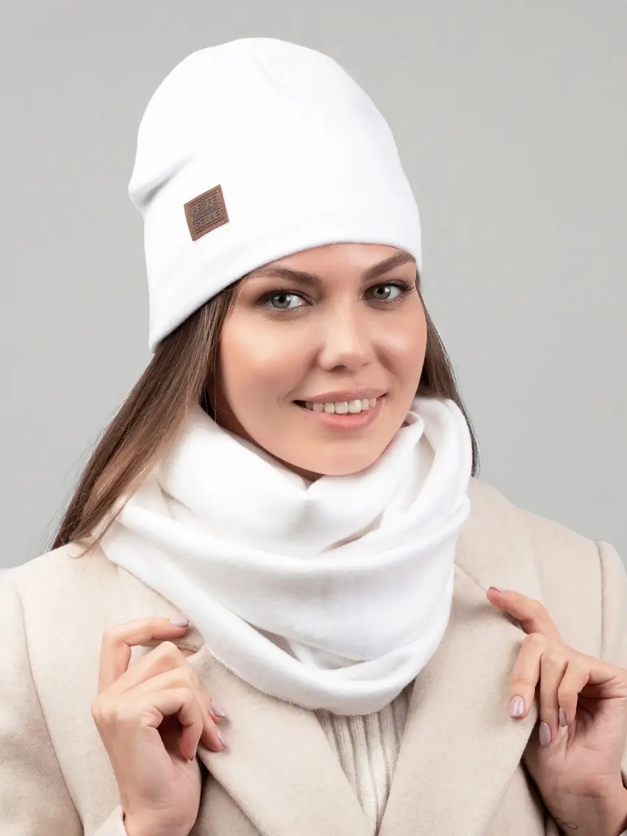 Описание: Теплый и уютный женский комплект из удлиненной шапки и снуда, идеально сочетающий в себе красоту и комфорт, послужит не только отличной защитой от холода, но и модным аксессуаром для создания стильного повседневного образа. Шапка полностью утеплена поларом, декорирована биркой с логотипом.