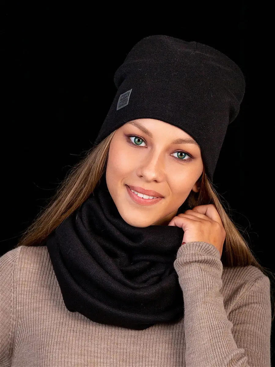 Описание: Теплый и уютный женский комплект из удлиненной шапки и снуда, идеально сочетающий в себе красоту и комфорт, послужит не только отличной защитой от холода, но и модным аксессуаром для создания стильного повседневного образа. Шапка полностью утеплена поларом, декорирована биркой с логотипом.