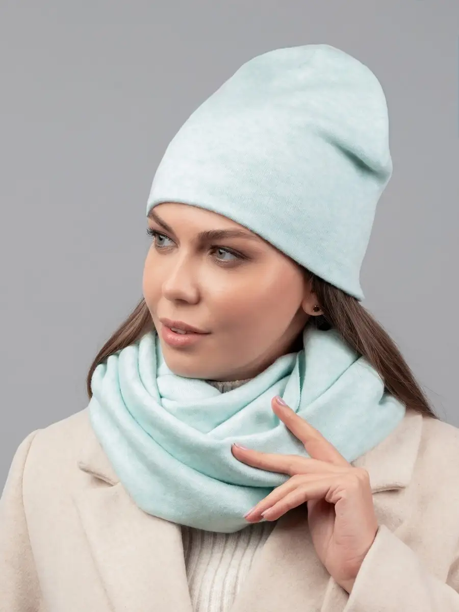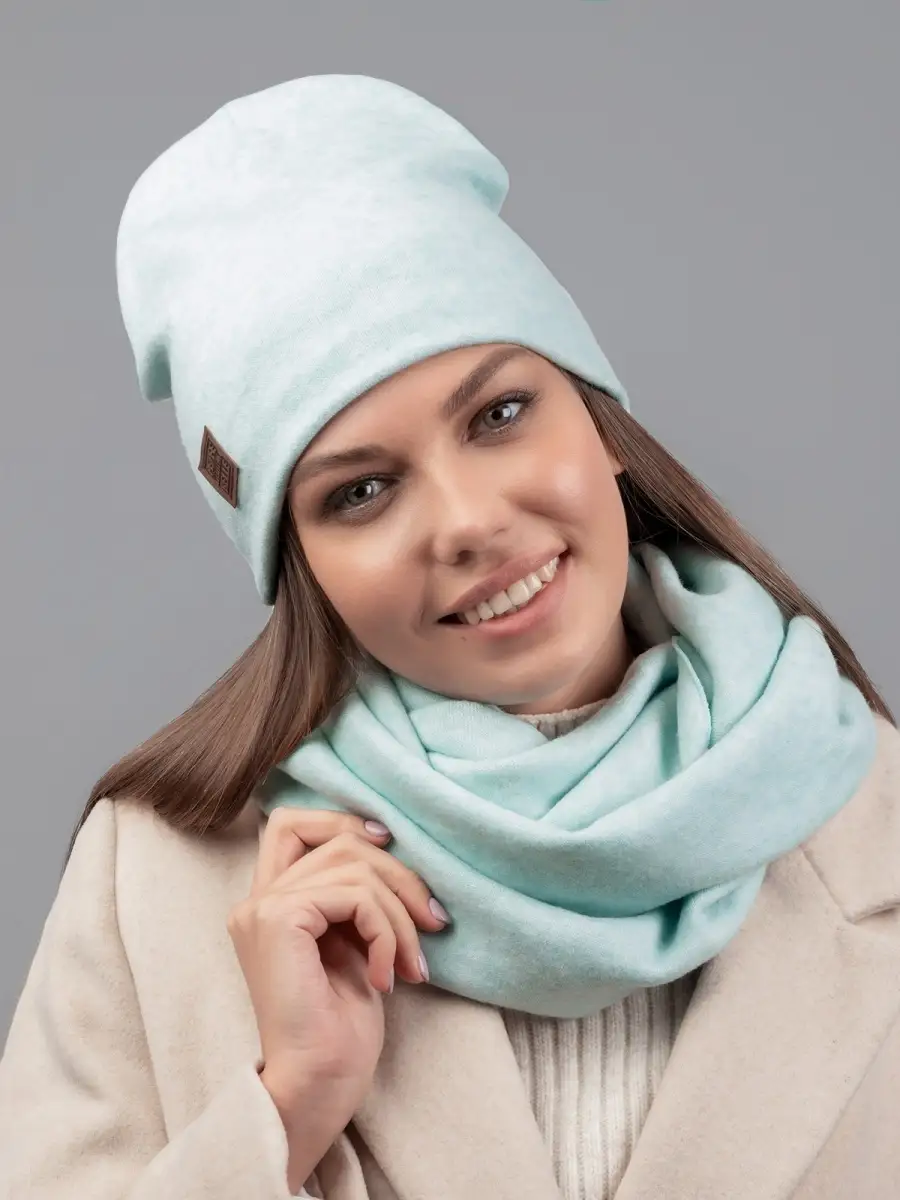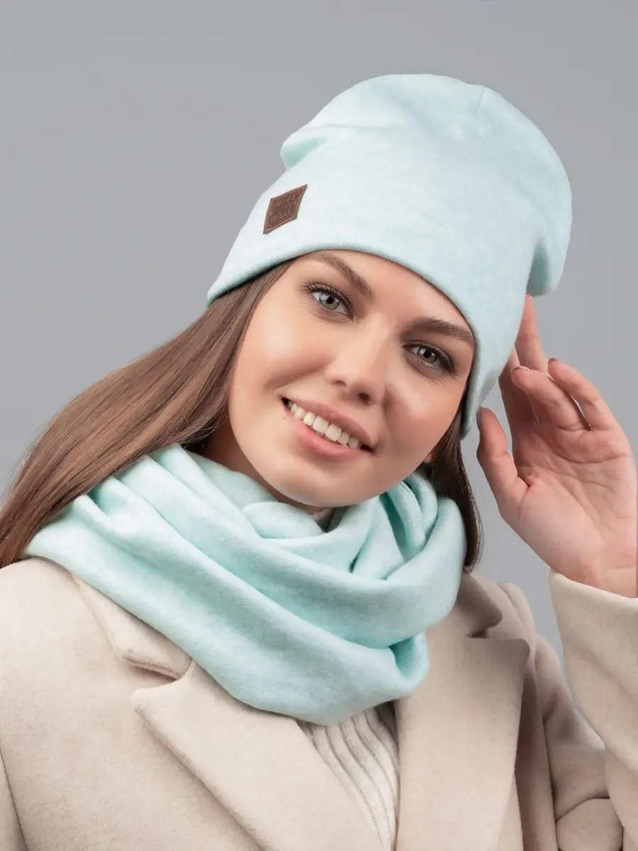 Описание: Теплый и уютный женский комплект из удлиненной шапки и снуда, идеально сочетающий в себе красоту и комфорт, послужит не только отличной защитой от холода, но и модным аксессуаром для создания стильного повседневного образа. Шапка полностью утеплена поларом, декорирована биркой с логотипом.