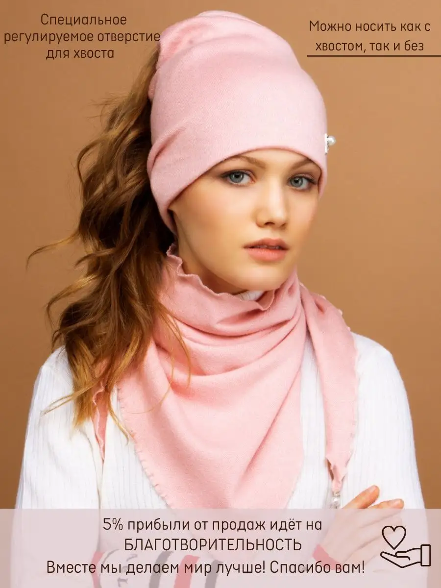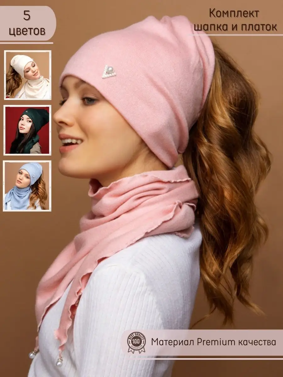 Описание: Начнем с плюсов: 1. Комплект шапка и платок ( шарф ) оригинальной формы с отверстием для волос под хвост можно надевать и вытащив хвост и по классически. 2. Материал Premium качества - тактильно очень приятный и выглядит привлекательно. 3. Придает женственности, шарма и элегантности. 4. За счет своей формы шапка выделяется среди остальных. 5. Платок (бактус ) Минусы : 1. Слишком много внимания окружающих . ------- Шапка на сезон осень весна зима , модная теплая бини с платком ( шарфом - снудом ) отличный комплект набор на подарок. Шапка демисезонная, зимняя как для женщин так и для подростка. Стильная модель подойдет под любую женскую одежду: под куртку, пальто, шубу. В составе ангора, шапка двойная без флиса, без отворота. Подойдет и под спортивный стиль. Зимняя, осенняя, весенняя, головной убор трикотажный, для женщин, девушек, девочек, подростков, шапочка теплая с шерстью. Фурнитура может отличаться.