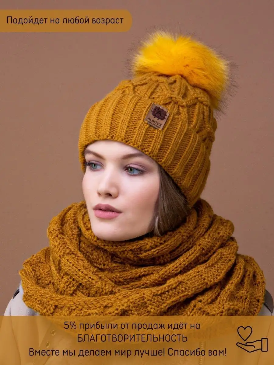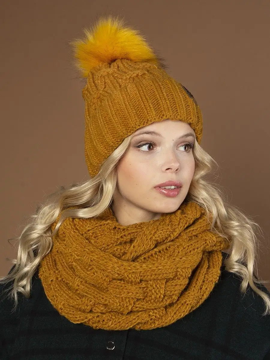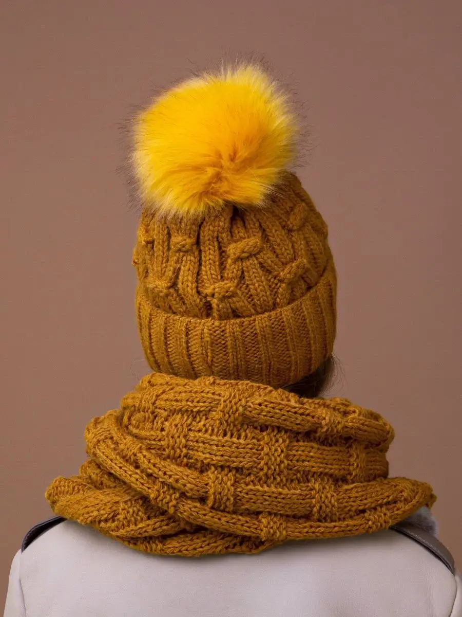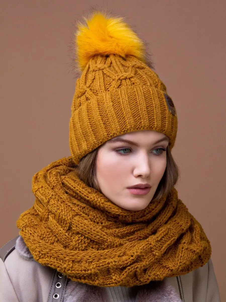 Тип комплекта со снудом; шапка с помпоном и снуд; шарф