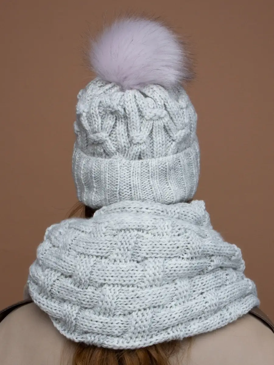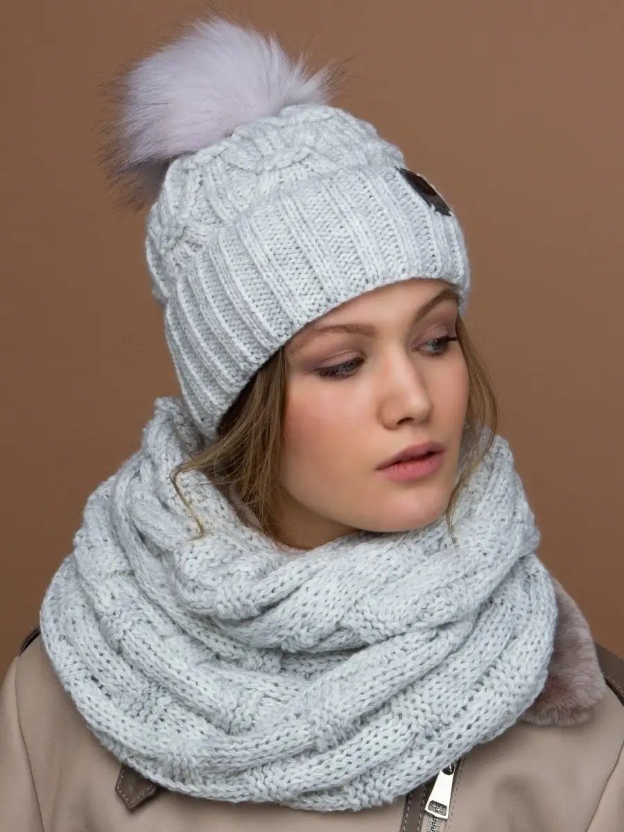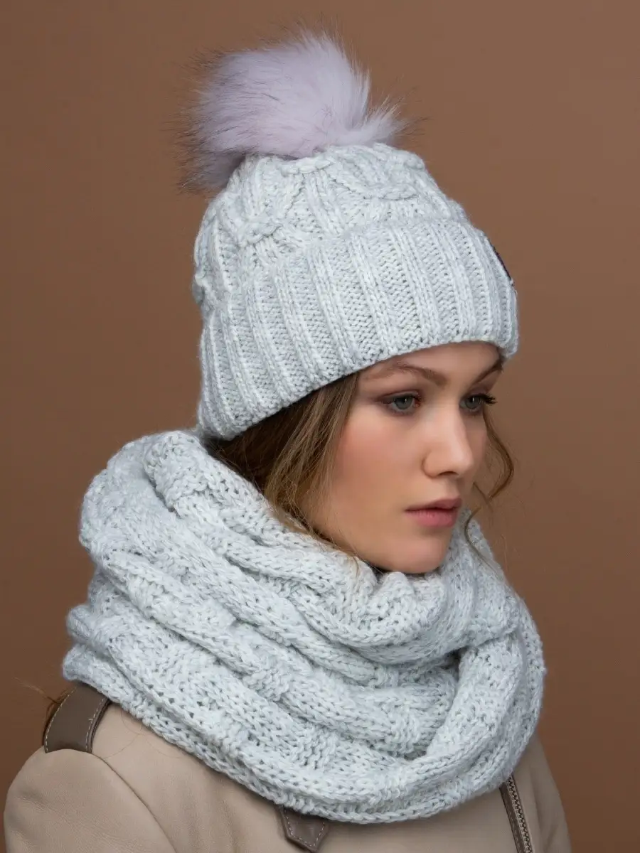 Тип комплекта со снудом; шапка с помпоном и снуд; шарф