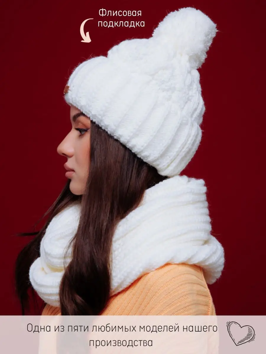 Описание: Вязаный зимний женский комплект шапка и снуд, изготовлен из высококачественной пряжи на основе акрила гипоаллергенного, что делает комплект тактильно приятным. Объемная шапка имеет большой помпон и флисовый подклад для дополнительного тепла, универсальный шарф-хомут используется не только как шарф, но и как накидка на голову. Головной убор крупной вязки стал очевидным продолжением любви модниц к вещам оверсайз, поэтому данный комплект отлично впишется в повседневный образ, и хорошо будет сочетаться и с классическим пальто, и с обычным пуховиком. Размер шапки и снуда универсальный и подойдут большинству женщин, девушек, подростков. Комплект послужит отличным подарком любимой девушке, жене, маме, бабушке. Фурнитура может отличаться. -------Нас находят по запросам: шапка женская зимняя осенняя весенняя подростковая вязаная на флисе теплая объемная флисовая демисезонная бини бинни для девочки для подростка для женщин головной убор с отворотом с помпоном шарф снуд хомут комплект женский осень зима весна модная теплая набор с шарфом со снудом крупной вязки вязанная
