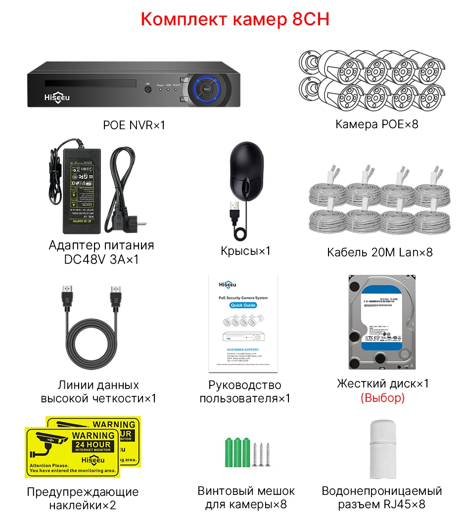 Комплект системы камер видеонаблюдения, 4/8 шт, 5/8 MП, 4K