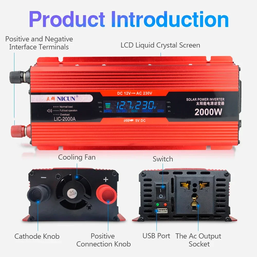 Комплекты системы солнечных батарей 3000 Вт для дома с инвертором 2000 Вт постоянного тока 110 В/230 В Солнечная панель 100A Контроллер заряда 10Ач LFP4 Батарея