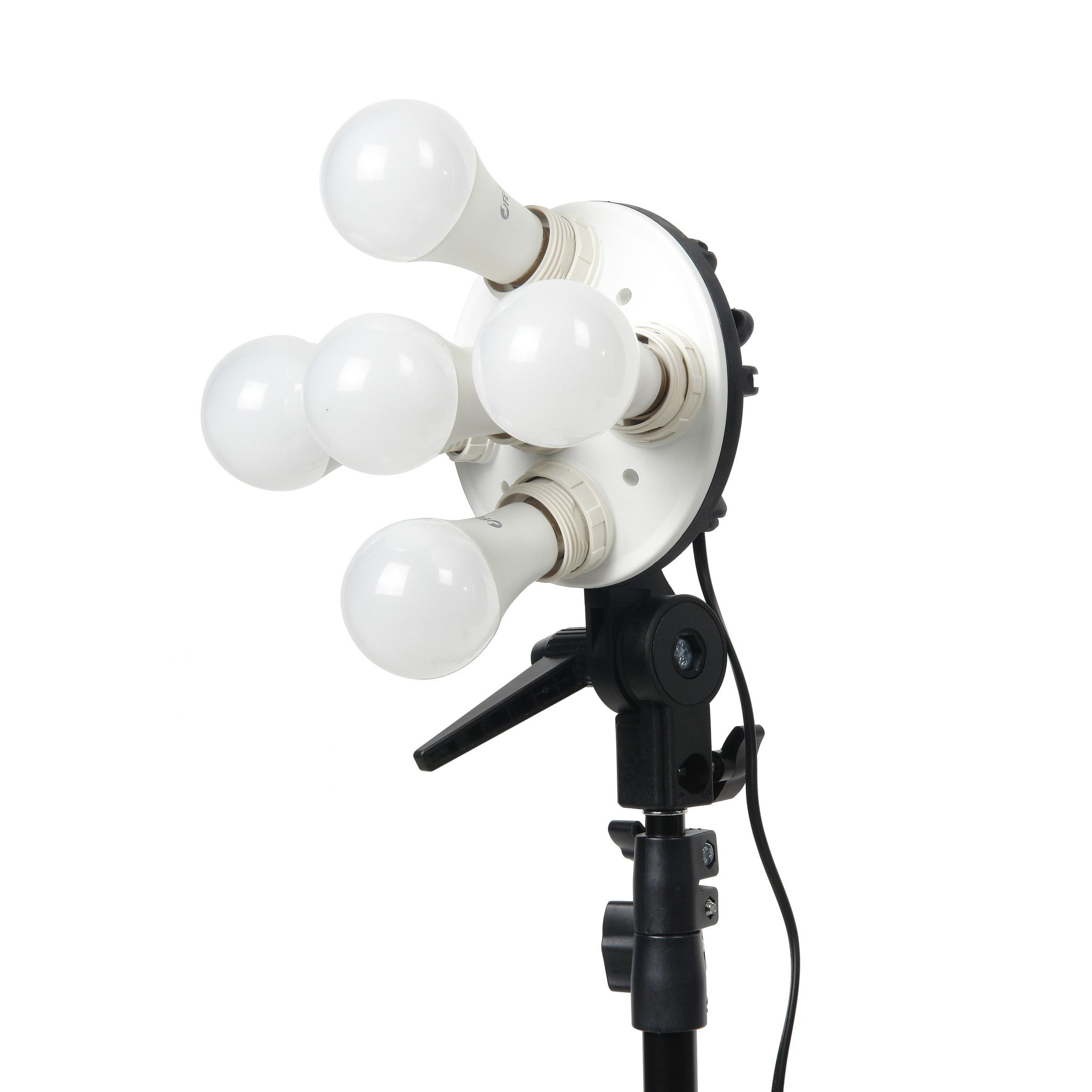 Описание: Комплект студийного оборудования Falcon Eyes KeyLight 518LED SB5070 KIT служит для формирования «мягкого» светового потока для освещения предметов и сцены во время фото- или видеосъемки. Быстрая настройка, простота сборки и достаточная мощность осветителя позволяют комплекту использоваться как универсальный источник света в студии или на выезде. Благодаря регулируемой яркости (2/5 мощности, 3/5 мощности, полная) осветитель может служить источником рисующего или заполняющего света во время записи любых видеороликов, стримингов, мастер-классов, предметной или портретной съемки. В комплект входят: пятиламповый патрон-осветитель LH-E27х5, съемный софтбокс 50х70 см и стойка 188 см. Студийный светитель LH-E27х5 представляет собой корпус с пятью патронами, в которые устанавливаются специализированные светодиодные лампы ML-18 LED с цоколем Е27 и форм-фактором обычных ламп накаливания. Лампы, применяемые в комплекте, выдают сбалансированный дневной свет с цветовой температурой 5500±100 К и высоким индексом цветопередичи CRI>90. Это позволяет вести съемку с постоянной цветовой температурой, без изменения баланса белого и мерцания (flicker free). Светодиодные лампы — экономичные, долговечные и не требуют частой замены. Осветитель регулируется при помощи двух переключателя, один из которых включает или выключает группу из двух ламп, расположенных горизонтально, а другой – группу из трех ламп, расположенных вертикально. Таким образом, регулируется яркость светового потока, включение двух групп выдает световой поток полной мощности с освещенностью 2400 лк (замеры проводились на расстоянии 1 м, с софтбоксом без рассеивателя). Осветитель питается от сети 220 В и имеет стандартный кронштейн с «трещоткой» для установки на стойки с креплением 5/8". Использование комплектного прямоугольного софтбокса 50х70 см позволяет сделать световой поток равномерным и направленным, что достигается за счет достаточной глубины софтбокса 40 см и белого тканевого рассеивателя. Многократно отражаясь от внутренней серебристой поверхности софтбокса, свет проходит через тканевый рассеиватель и становится «мягким». Комплект освещает объект равномерно, без излишних пересветов и теней. Софтбокс собирается непосредственно на корпусе осветителя. Для этого необходимо вставить 4 спицы каркаса в отверстия на корпусе ламповой панели и натянуть тент софтбокса. Тканевый рассеиватель надевается на передний край софтбокса и закрепляется «липучками». Ламповый осветитель с софтбоксом устанавливается на комплектную осветительную стойку, на конце которой закреплен несъемный шпигот 5/8”, и фиксируется винтом. Максимальная высота стойки 188 см, минимальная – 85 см. Алюминиевые трубки складных телескопических секции диаметром 22/19/16 мм фиксируются винтовыми зажимами. Панель ламповая LH-E27х5 – 1 шт. Софтбокс – 1 комплект (тент, 4 спицы, тканевый рассеиватель, чехол) Лампа светодиодная ML-18 LED - 5 шт. Стойка– 1 шт. Руководство по эксплуатации Гарантийный талон