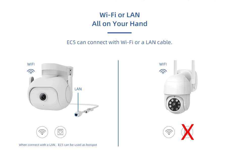 EC5 также поставляется с сиреной 100 дБ, чтобы избежать взлома в ключевой области. Wi-Fi или LAN | Все в ваших руках