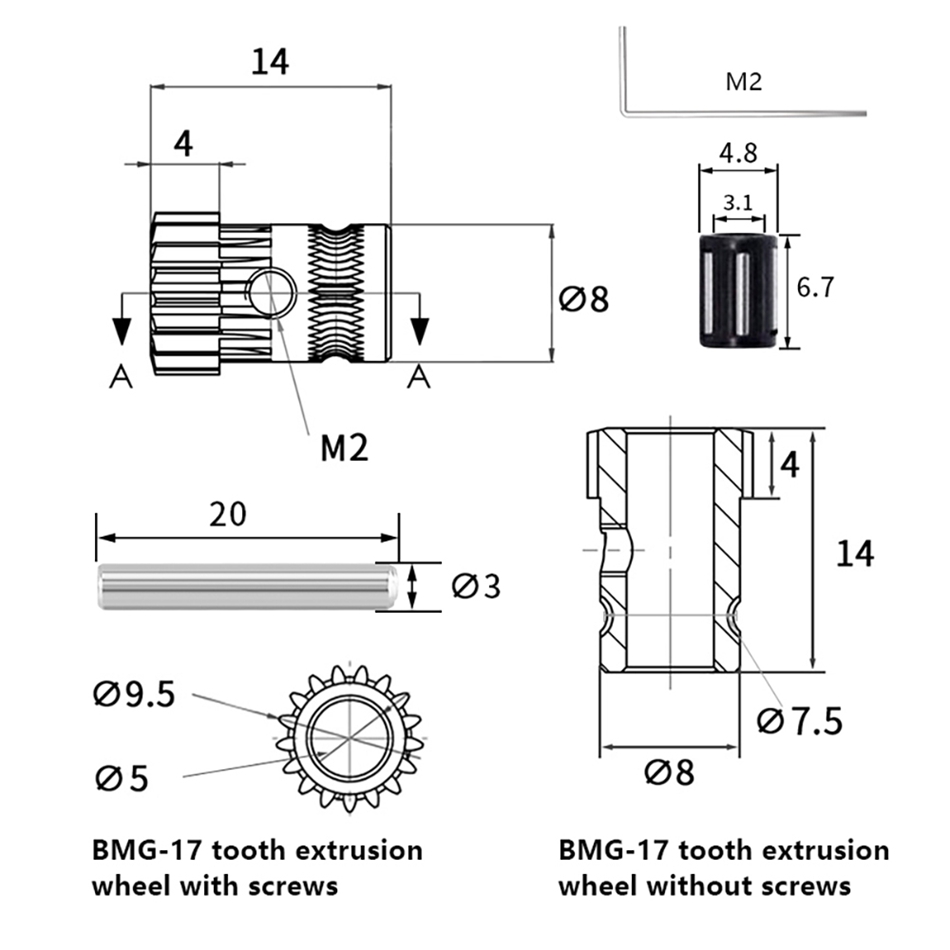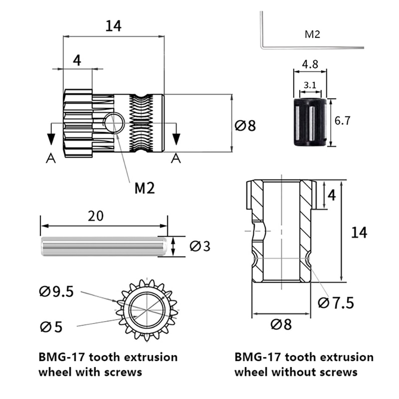 Комплект зубчатого редуктора с двойным приводом, полностью металлический Улучшенный экструдер для BMG для 3D-принтера Prusa i3, экструдер Bowden