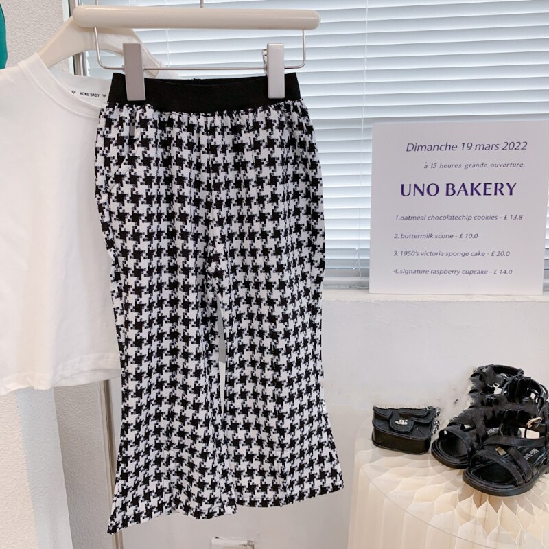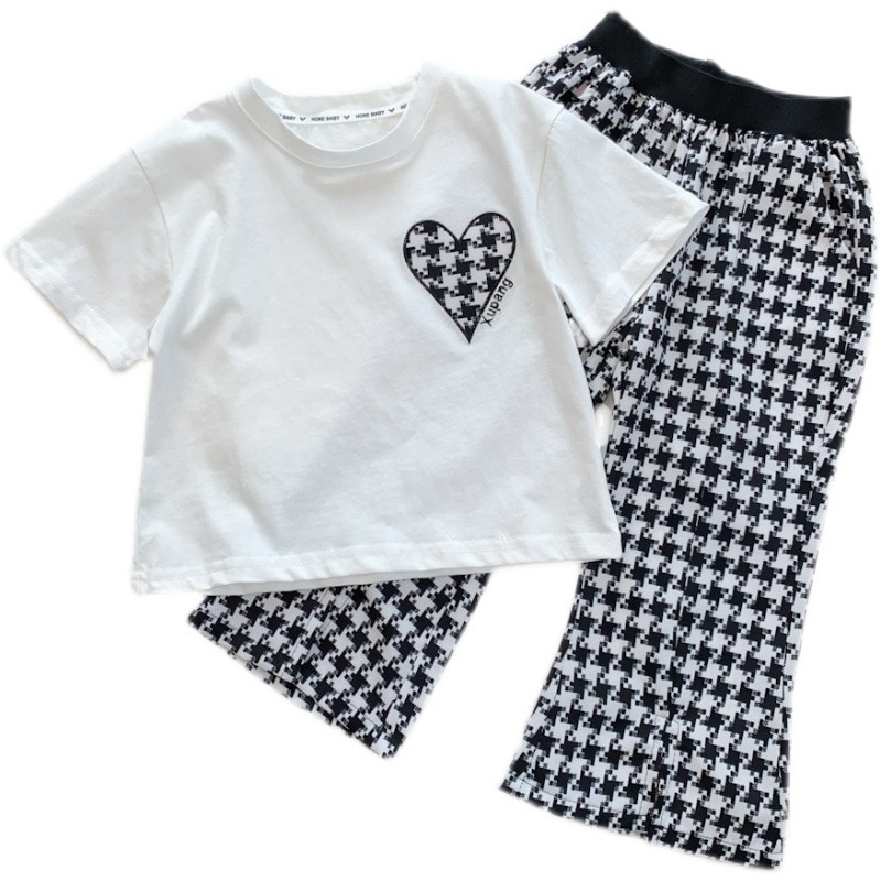 Комплекты детской одежды, летние комплекты одежды для девочек, футболка и штаны с колокольчиками для девочек, клетчатые штаны, школьный наряд для девочек, спортивный костюм