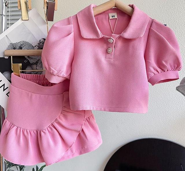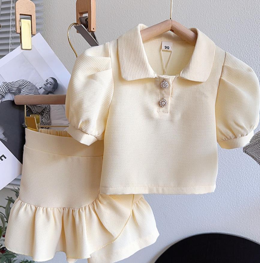 Комплекты одежды для девочек, летние детские пуговицы, топы с коротким рукавом