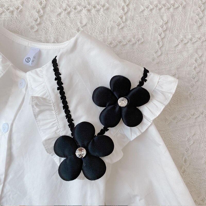 Комплекты одежды для девочек, новинка 2023, осенне-Весенняя рубашка с длинным рукавом и цветочным принтом, топ и расклешенные брюки, детская эксклюзивная одежда, 2 шт., 3, 4, 5, 6, 7 лет