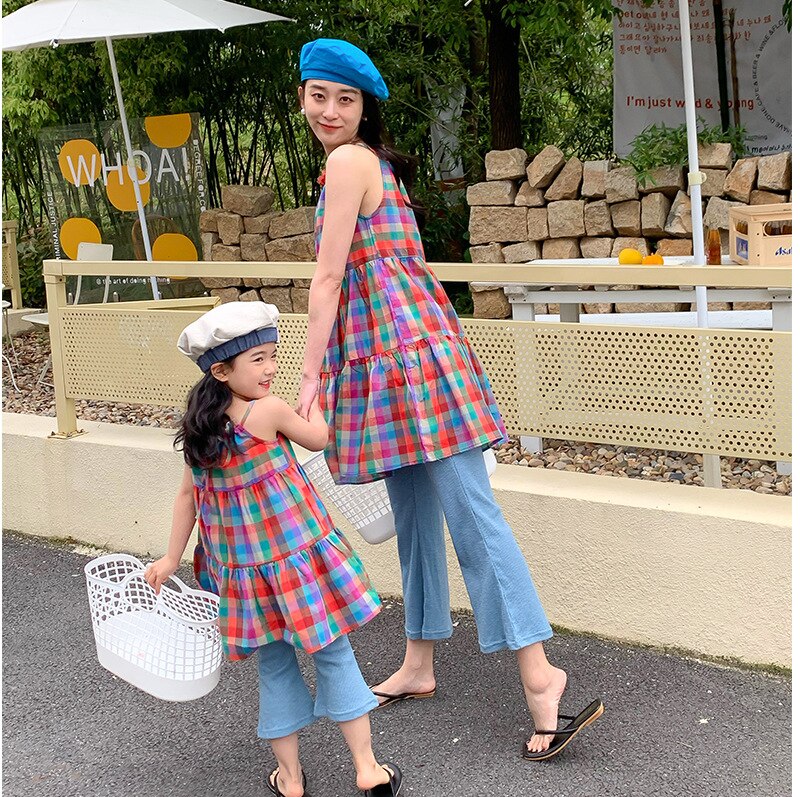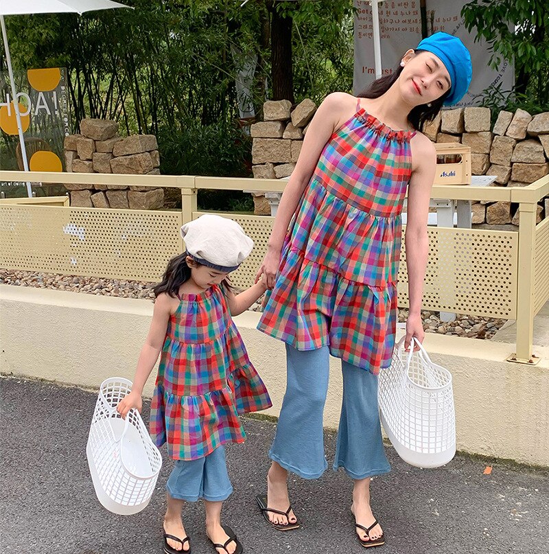 Комплекты семейной летней модной одежды для мамы и дочки, яркое платье и расклешенные брюки, комплекты из 2 предметов