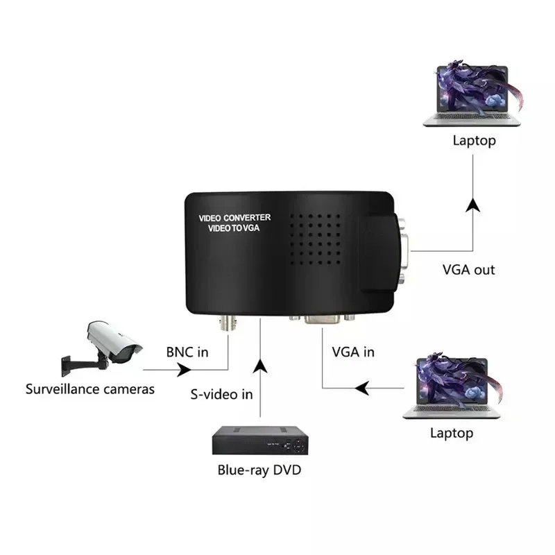 Этот продукт (BNC в VGA) представляет собой Неразрушающий видеоконвертер, предназначенный для охранных, медицинских и домашних пользователей. Оно может преобразовать видеосигналы в сигналы ВГА различных разрешений от 800С600 к 1920С1200 используя предварительную цифровую технологию обработки изображений а разнообразие выход разрешения ВГА, для того, чтобы добиться отображения задней части может быть достигнуто двухточечное отображение, чтобы показать идеальное изображение.