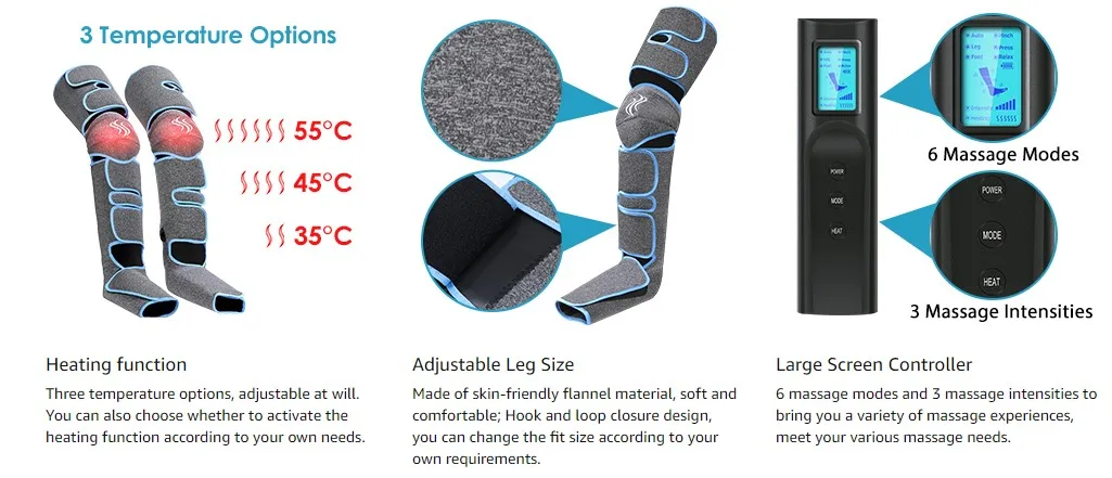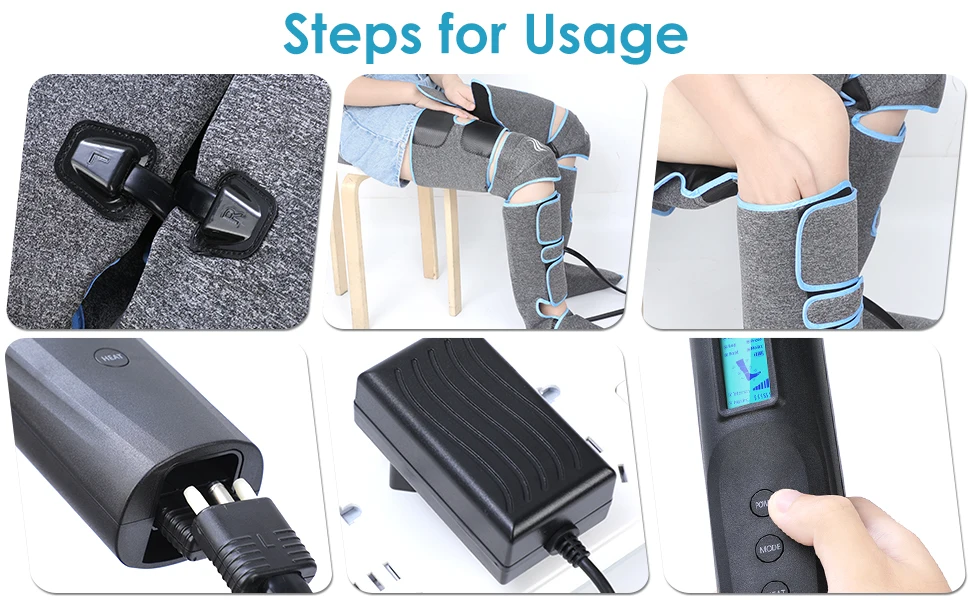 First, you need to connect the hose of the massager to the controller, then put on the Velcro of the leg compression massager, and use the controller of the massager to operate