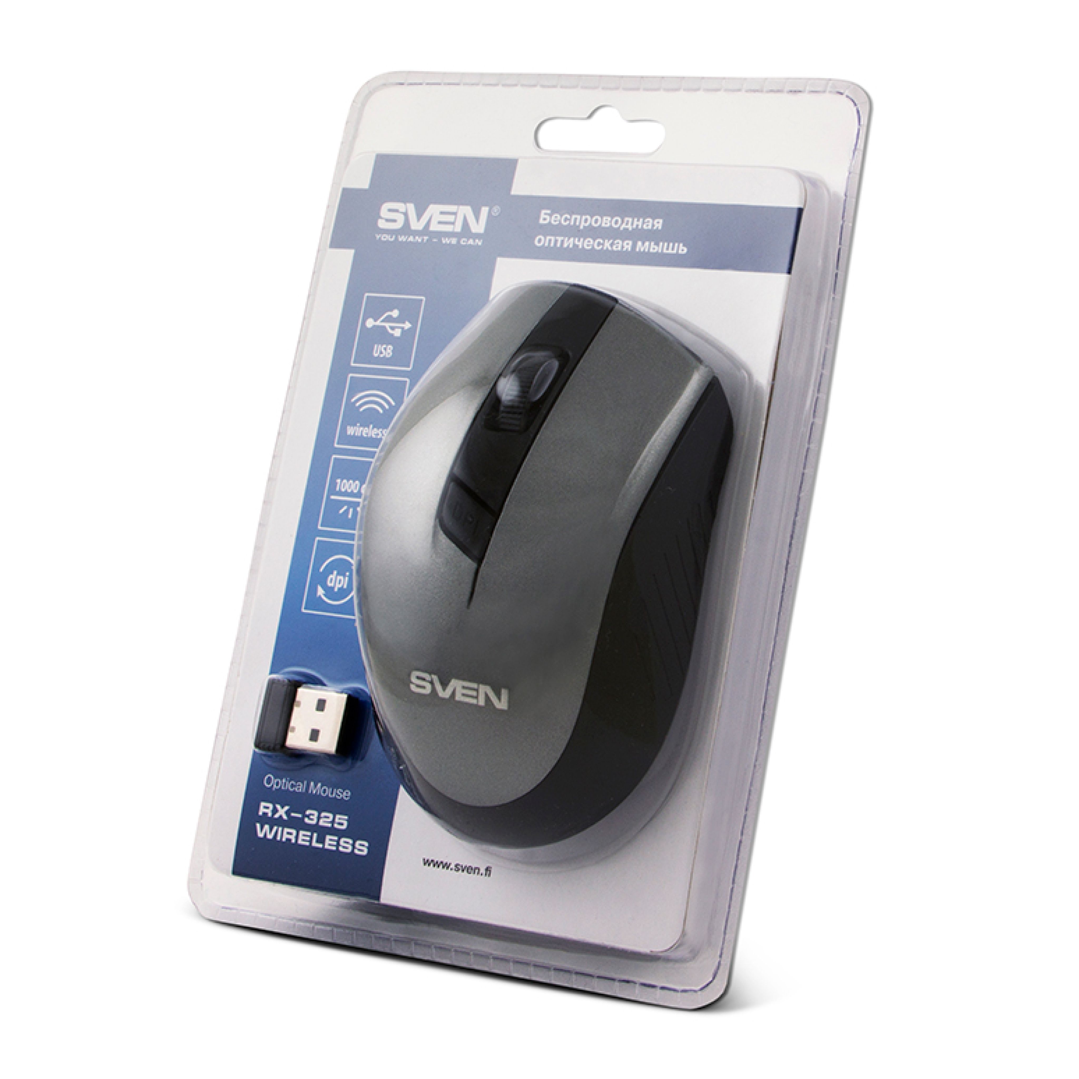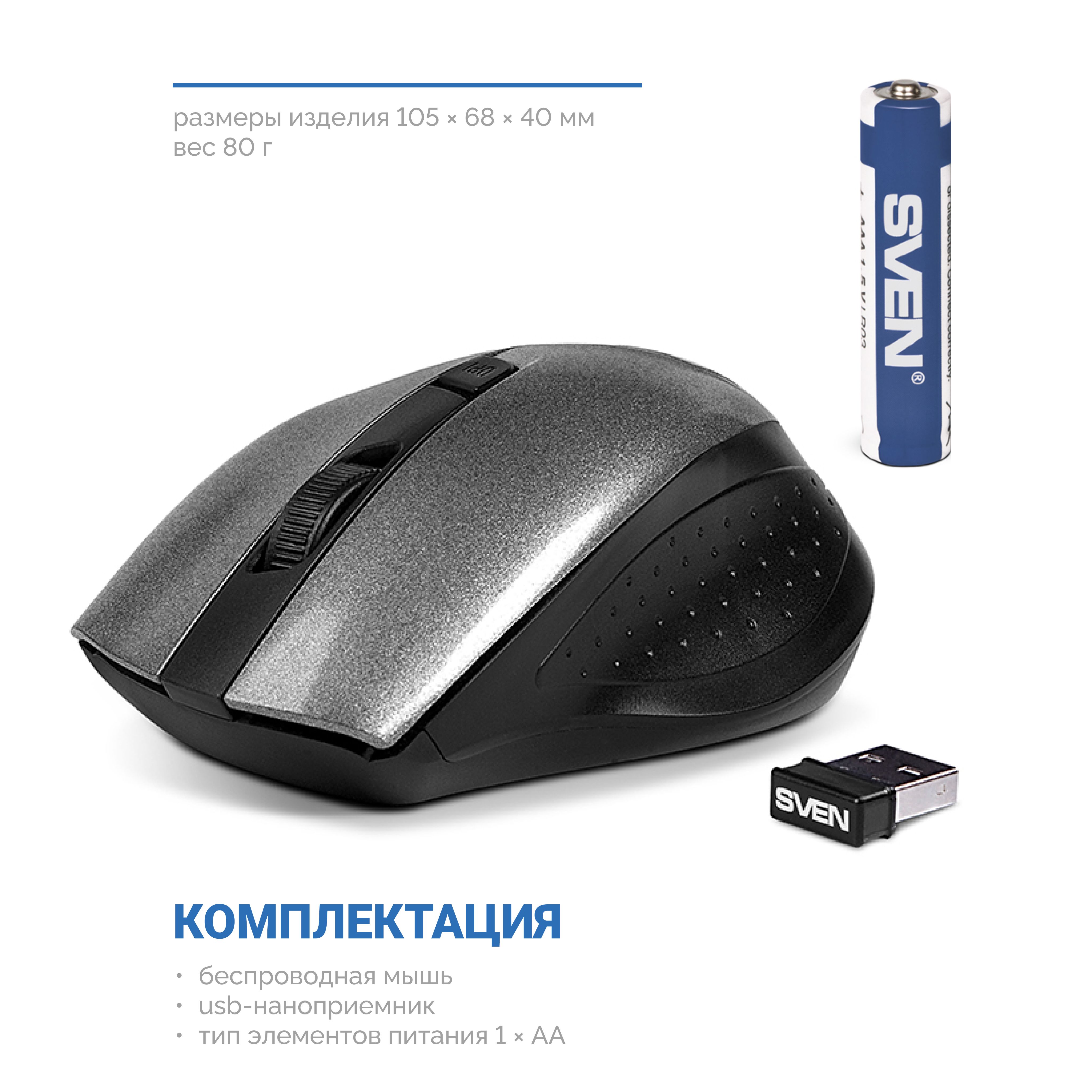 Компьютерная мышь беспроводная SVEN RX-325 600, 1000 DPI 2.4 GHz