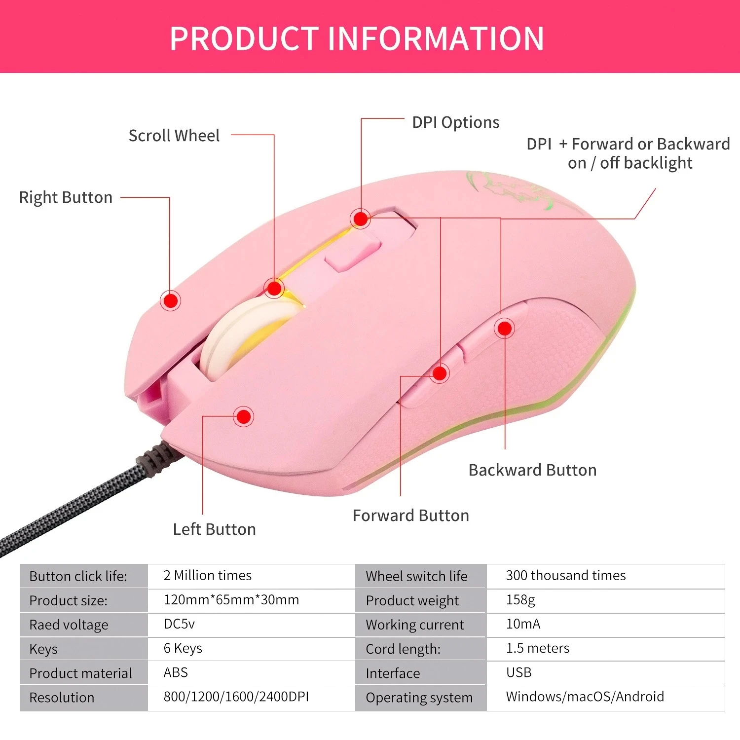 Компьютерная мышь с Цветной подсветкой, 2400DPI