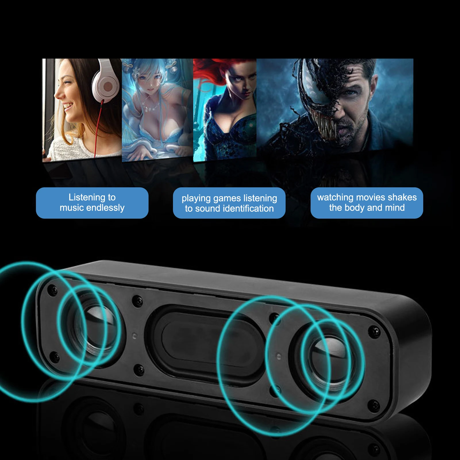 Настольный динамик Soundbar оснащен двухканальным стереозвуком 3D, новое ощущение хорошего качества звука. Этот компьютерный динамик помогает погрузиться в чудесный звук, наслаждаясь музыкой, фильмами и играми. Подходит для устройств с общим интерфейсом USB, таких как ноутбуки, планшеты, ноутбуки и настольные компьютеры.