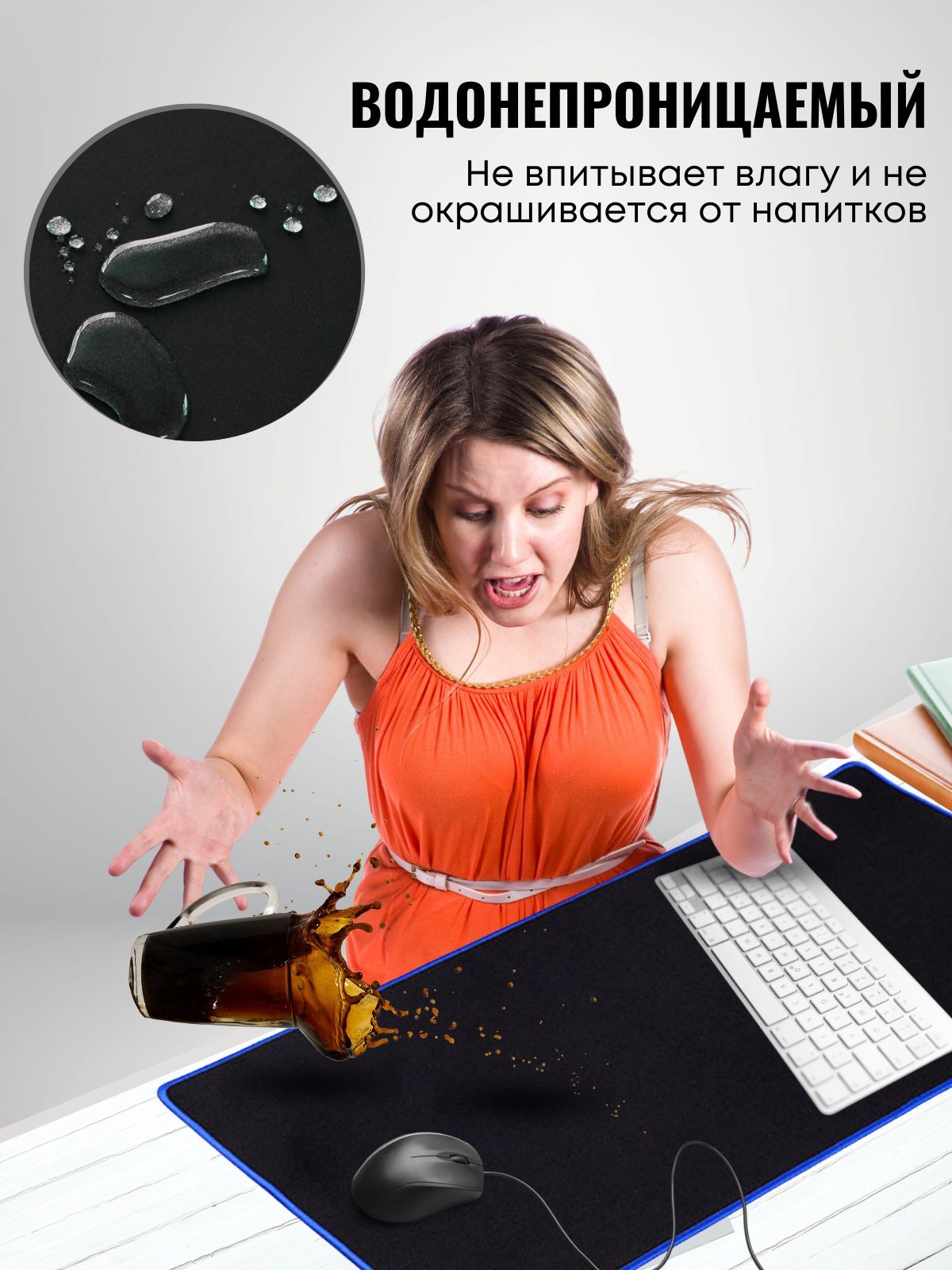 Водоотталкивающее покрытие из ткани и качественно прошитые края помогут сохранить срок службы коврика на долгие годы.Большой размерРазмер компьютерного коврика на стол позволяет накрыть рабочий стол под мышку и клавиатуру. Подойдет в качестве подарка: мужчине, женщине, коллеге, начальнику, любимому, мужу, жене, девочке, мальчику ребенку на 23 февраля, 8 марта, день рождения, на любой другой праздник и без повода.Качественно прошитые края-Защищают от деформаций