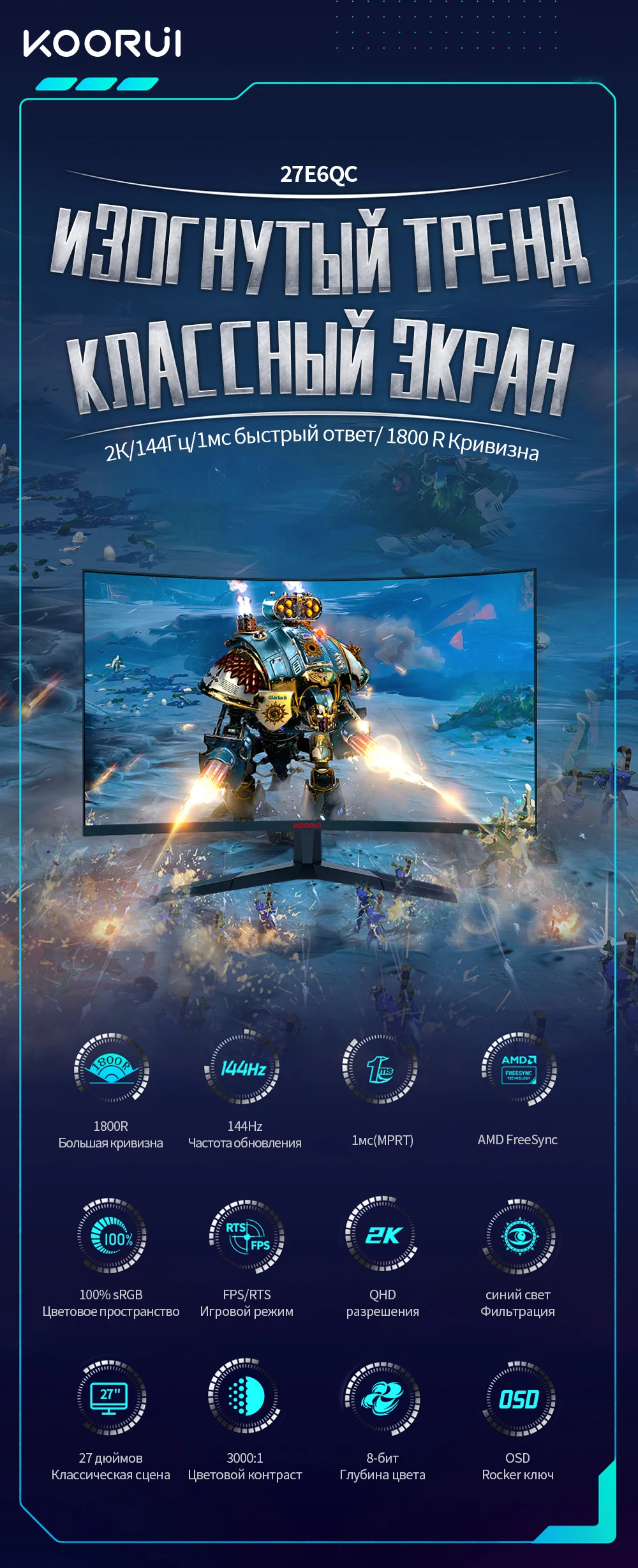 Компьютерный монитор KOORUI 2K, 144 Гц, Gamer Monitor Para PC