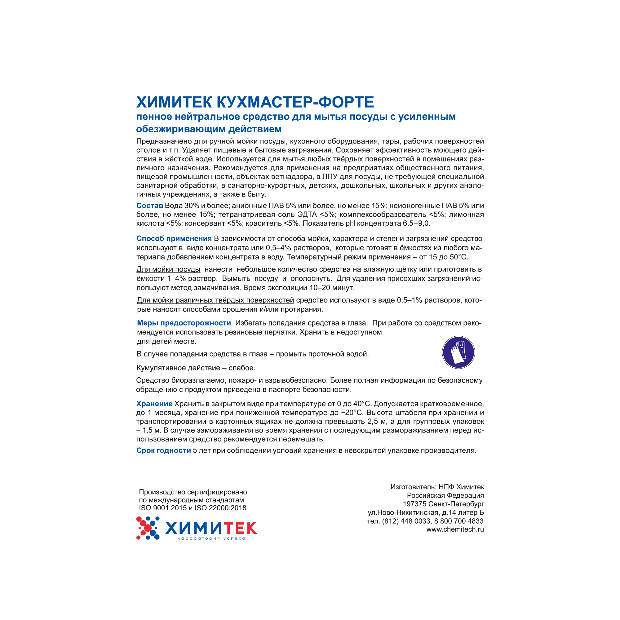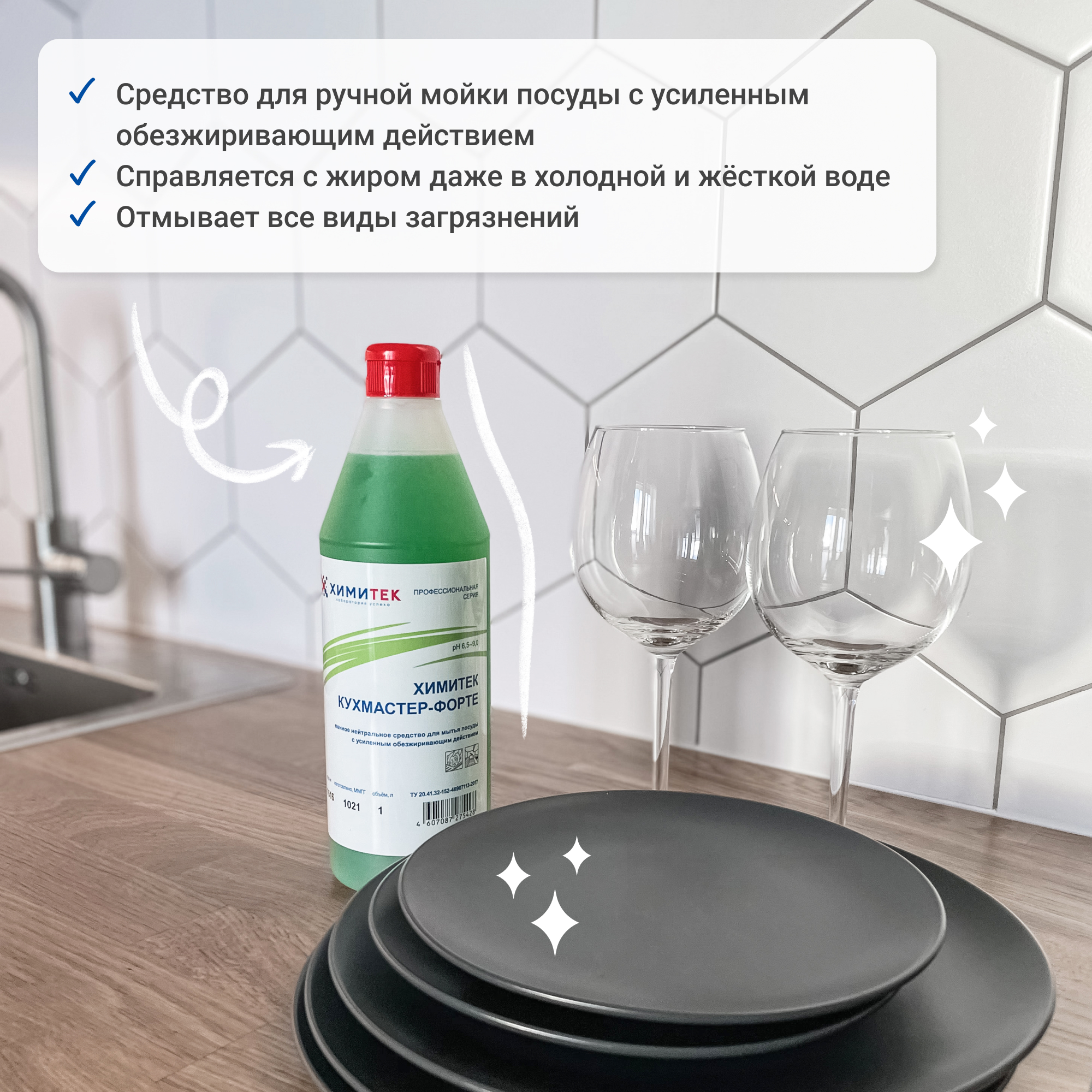 Кухмастер-Форте предназначен для ручной мойки посуды, кухонного оборудования, тары, рабочих поверхностей столов, кроме того используется для мытья любых твёрдых поверхностей в доме и помещениях различного назначения. Удаляет пищевые и бытовые загрязнения.