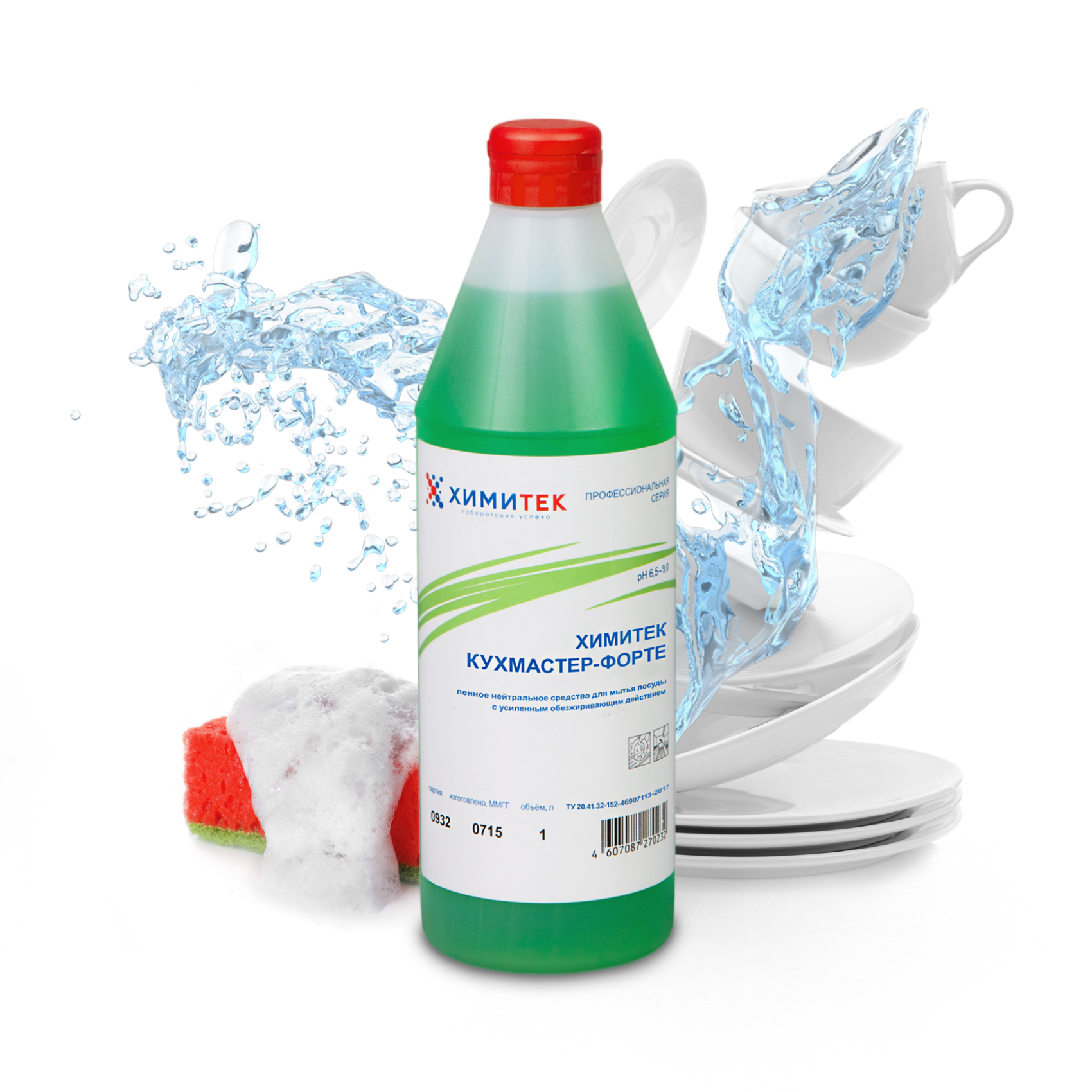 Концентрированное профессиональное средство для мытья посуды с усиленным обезжиривающим действием ХИМИТЕК Кухмастер-Форте, 1л