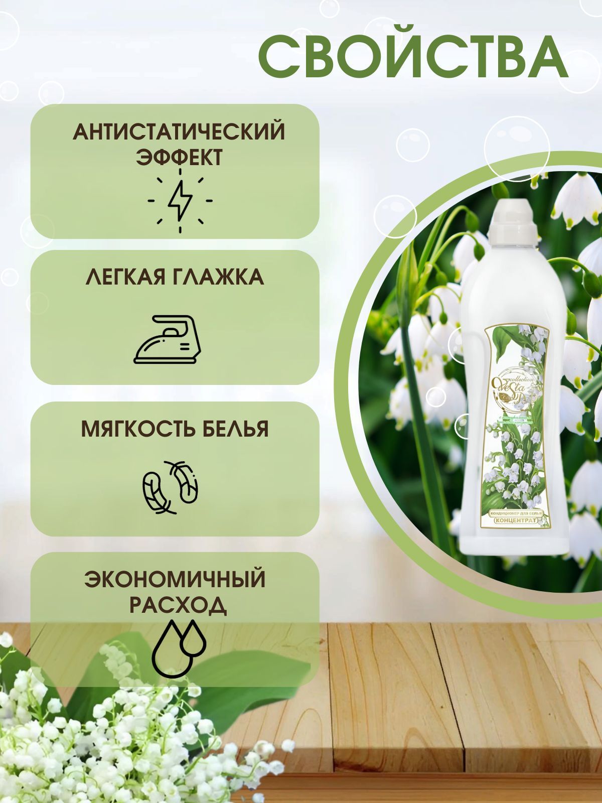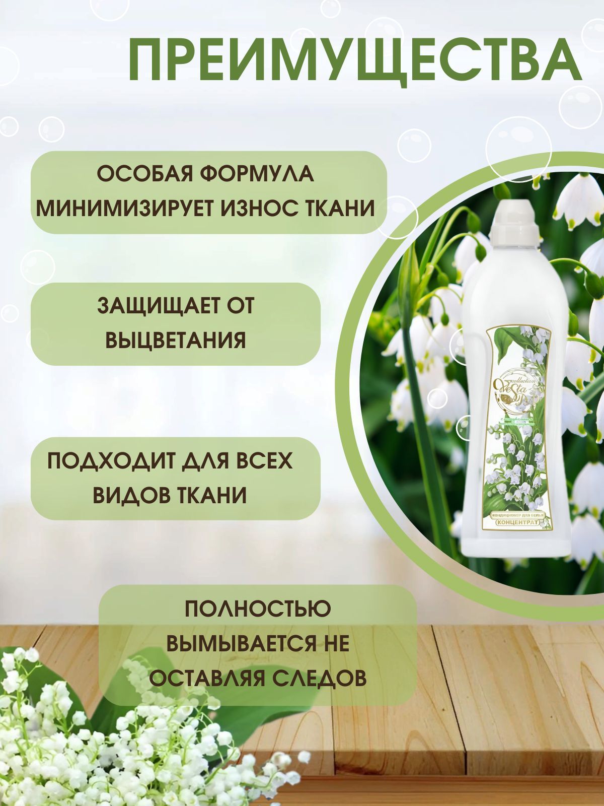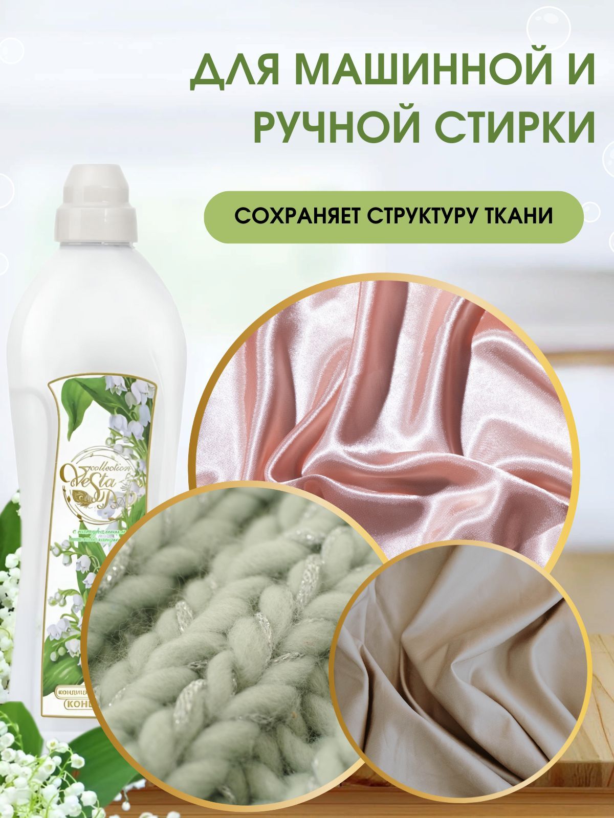 Описание: Концентрированный кондиционер для белья серии SPA COLLECTION Ландыш это деликатное средство, разработанное для особо чувствительной кожи, нейтрализует негативное действие стирального порошка на организм человека. Кондиционер для белья Концентрат Vesta SPA collection c натуральным маслом ЛАНДЫША прекрасно ухаживает за волокнами ткани, дарит им гладкость, оставляет восхитительный тонкий аромат ландыша. Особый трепет вызывают маленькие колокольчики, звенящей аурой первых весенних дней избавляя от гнетущего настроения и меланхолии. Аромат ландыша вызывает радость и проясняет сознание, отлично снимает напряжение, способствует укреплению памяти и развитию интеллектуальных способностей. Удивительное растение ландыш обладает мягкой энергетикой и подходит людям любого возраста и пола. Маленькие белые бутончики ландыша символизируют чистоту и нежность, верность и любовь, счастье и ласку. Именно поэтому с древних времен ландыши ставили у ложа молодожен. Завораживающий притягательности незабываемый аромат ландыша — аромат Гармонии. Высокий комфорт благодаря хорошей абсорбционной способности. Смягчающие вещества, полученные из природных источников, восстанавливают мягкость одежды и белья. Особая формула минимизирует износ ткани, увеличивая срок службы одежды. После стирки белье хорошо впитывает влагу, предохраняя вещи от впитывания грязи. Предназначен для ухода за любыми типами тканей. Выпускается в бутылках РЕТ с удобной мерной крышкой емкостью 1 л. Одной упаковки бытовой химии для стирки Веста Алва хватит надолго 1 литра на 50 стирок.