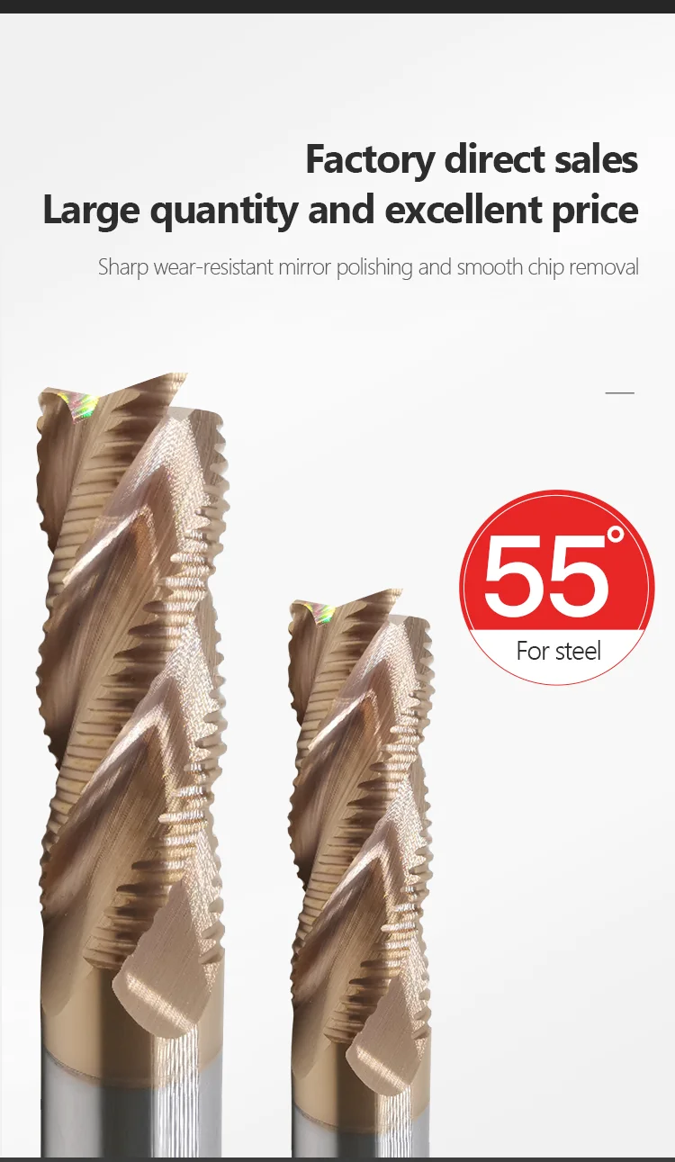 Концевая фреза для черновой обработки, твердосплавная, 4 канавки, хвостовик HRC55 3-20 мм для стали, железа, алюминия, МДФ, стеклопластика, акрила, дерева, меди, пластика