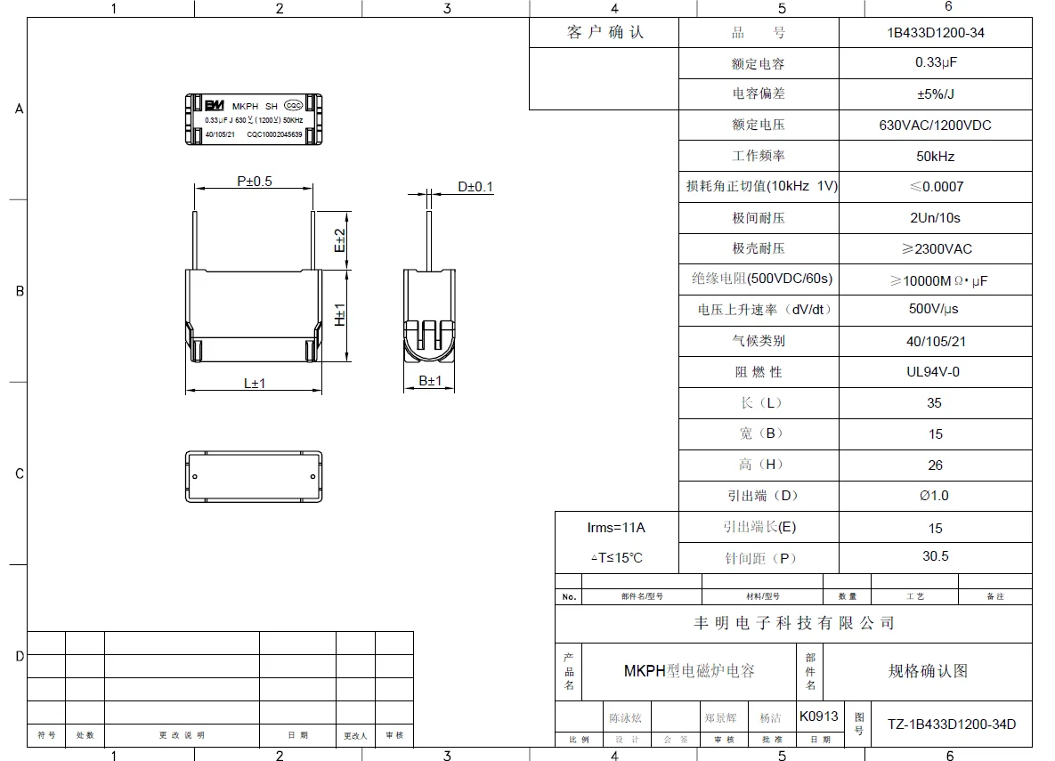 Конденсатор высокого напряжения BM MKPH, 0,24 мкФ, 0,27 мкФ, 0,3 мкФ, 0,33 мкФ, 0,47 мкФ, 630 В переменного тока, 1200 В постоянного тока, конденсатор для двигателя индукционного вентилятора, 5 шт./партия
