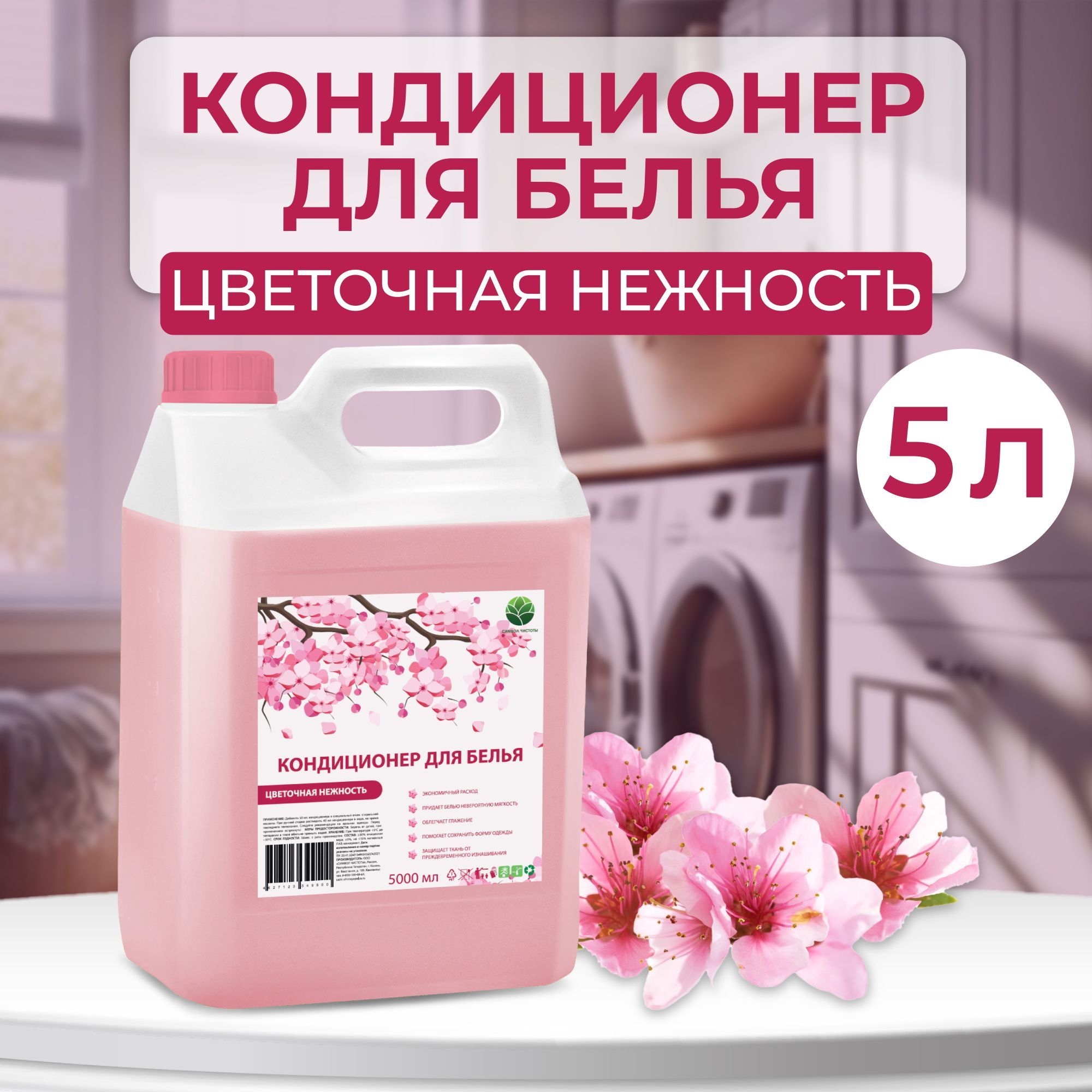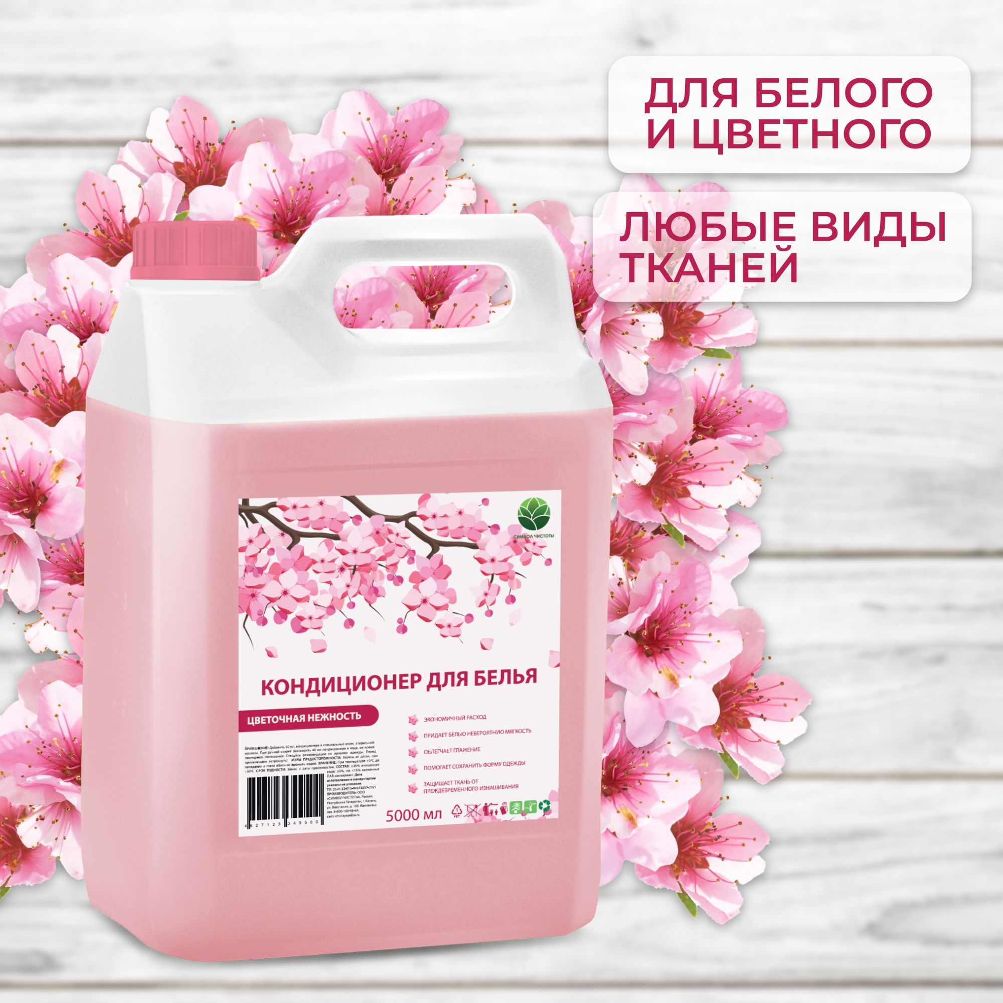 Кондиционер для белья 5 литров Цветочная Нежность/ Символ Чистоты/ Ополаскиватель для стирки универсальный 5л.