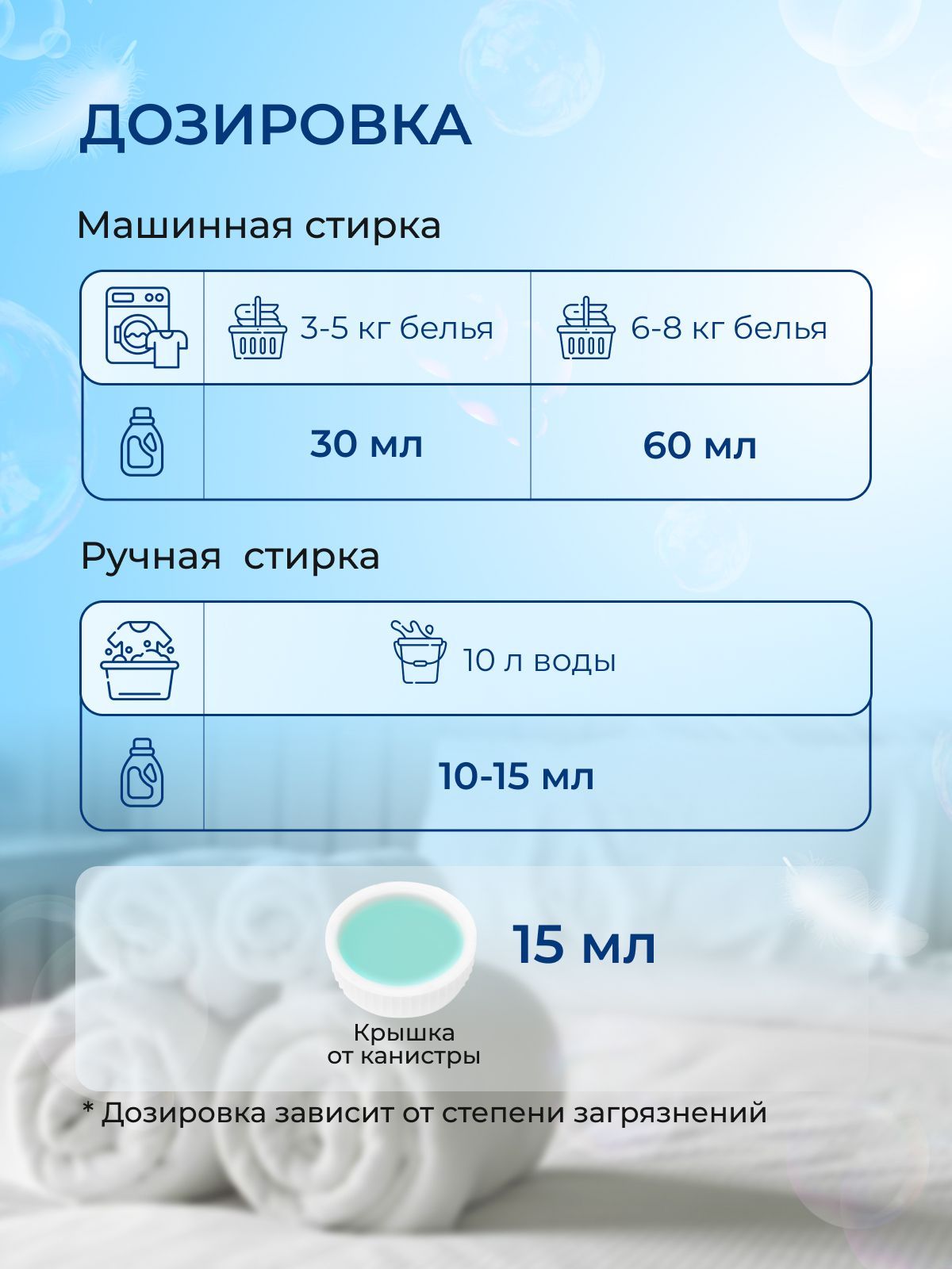 Особенности применения: Антистатический эффект, Ароматизация, Эффективен в холодной воде