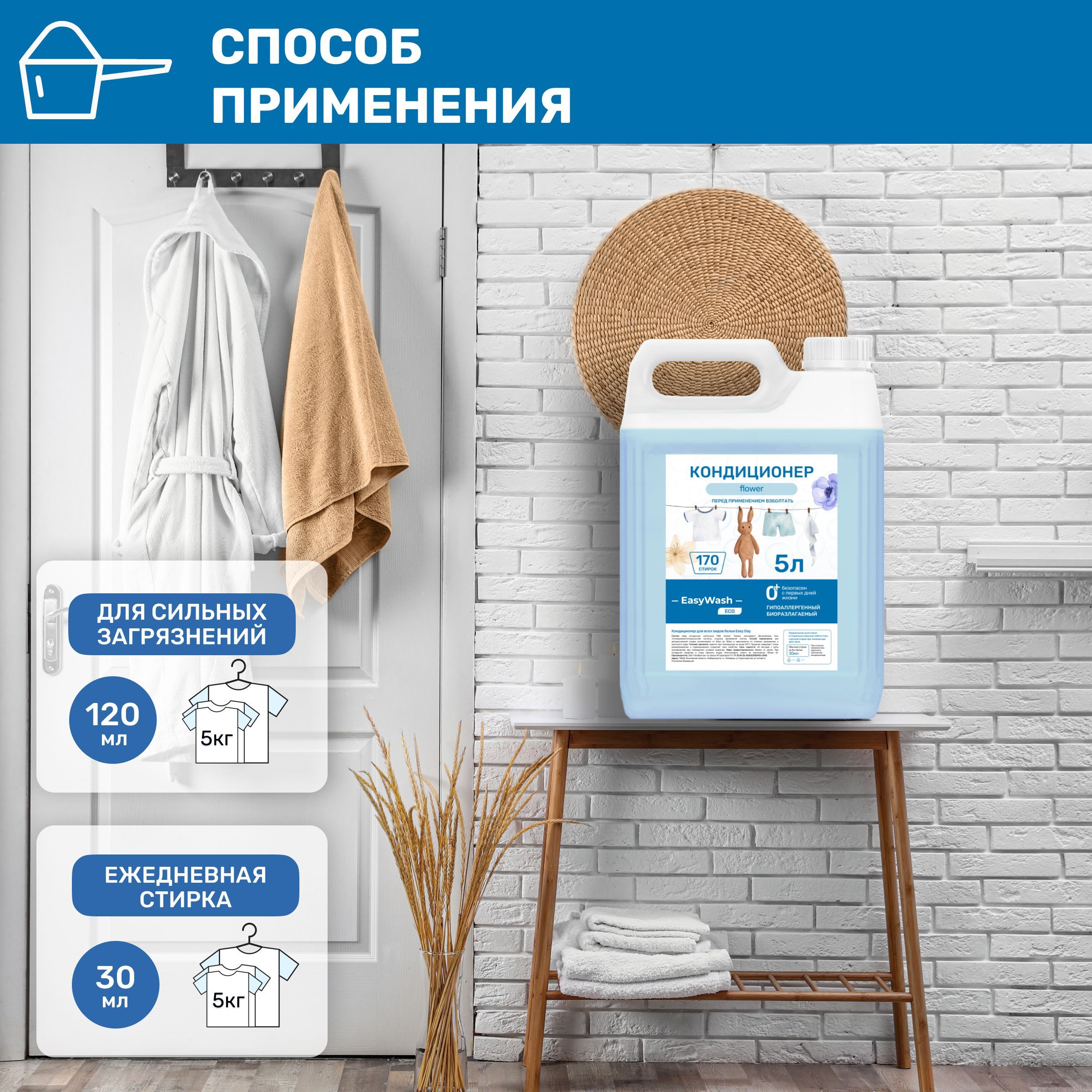 Кондиционер имеет прекрасный цветочный аромат, который станет незаменимым спутником в заботе о вашем белье. Благодаря экономичному объему в 5 литров, вы можете использовать его на протяжении длительного периода времени, позволяя вам наслаждаться свежестью и мягкостью белья даже в самые холодные дни.Деликатно и эффективноДеликатная стирка и эффективное очищение - это то, на что стоит обратить внимание при выборе определенных составляющих для стирки, включая ополаскиватель для белья концентрат. Кондиционер для билья - это важный компонент в процессе стирки, который защищает ткань от усиленного износа, придает ей мягкость, нежность и свежий аромат. Кондиционер для белья 5л эко-дружелюбный продукт, который не наносит вреда окружающей среде. Этот кондиционер выступает как экологичный кондиционер для белья, который легко растворяется в воде и снижает количество выбросов химических веществ.