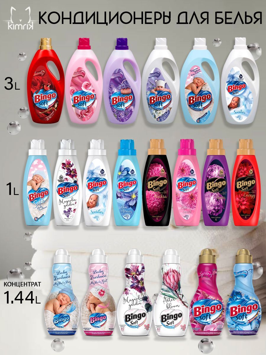 Описание: Кондиционер для белья Bingo Soft SENSITIVE, 1000 мл с соблазнительным и утонченным запахом придаст вашему белью роскошный аромат и невероятную мягкость. Специальная формула придает мягкость и нежность белью после стирки. Кондиционер подходит для всех видов тканей, включая шерсть и шелк. Концентрированная формула обеспечивает экономичный расход. Кондиционер полностью выполаскивается из тканей и не остается на одежде, облегчает глажение и обладает антистатическим эффектом. Не вызывает раздражающего эффекта на кожу. Объем 1 литр, рассчитан на 20 стирок. Произведено в Турции. Состав: 5% катионные поверхностно-активные вещества, метилизотиазолинон, бензизотиазолинон, отдушка, альфа-изометилион, бутилфенил метилпропионал, цитронеллол, гераниол, линалоол. Дозировка: для ручной стирки 25 мл, для стирки в машине - 50 мл. Произведено в Турции. Наш кондиционер №1 в России по силе парфюма: наши клиенты знают, что вещи, постиранные Bingo, будут оставлять за собой притяный шлейф и наполнять шкафы сладким ароматом долгое время.