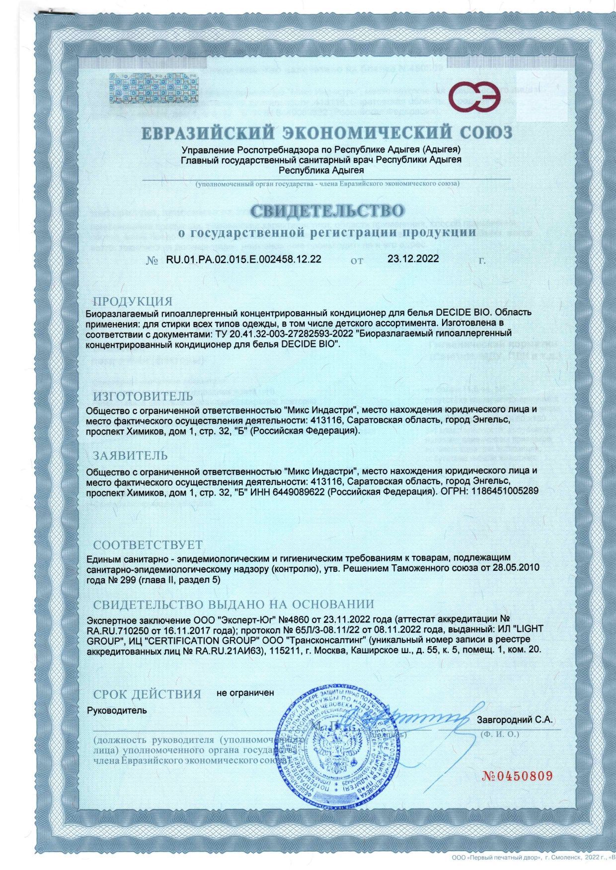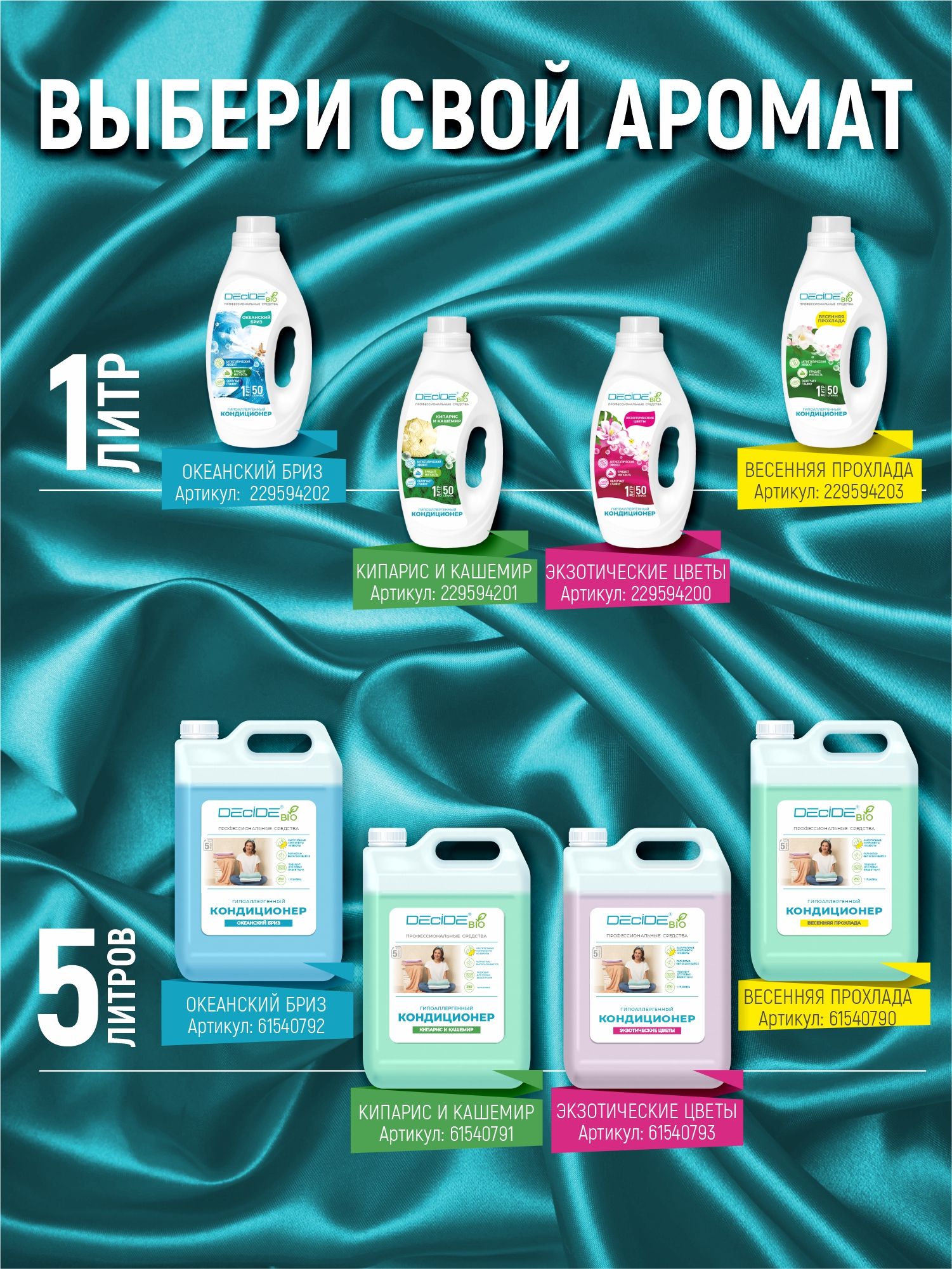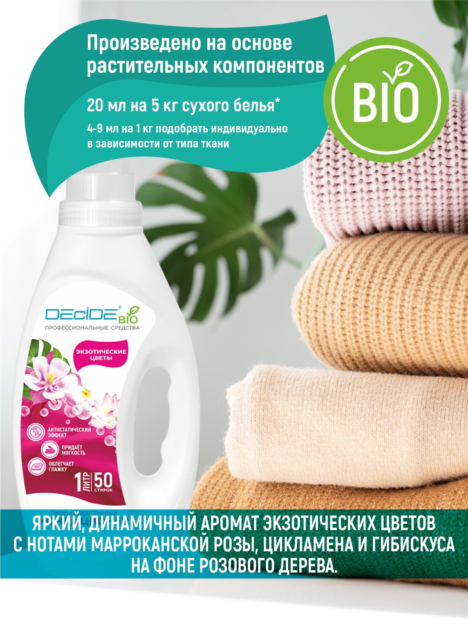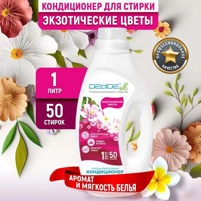 Кондиционер для белья DECIDE "Экзотические цветы"1 л, 50 стирок, гипоаллергенный, биоразлагаемый, концентрат