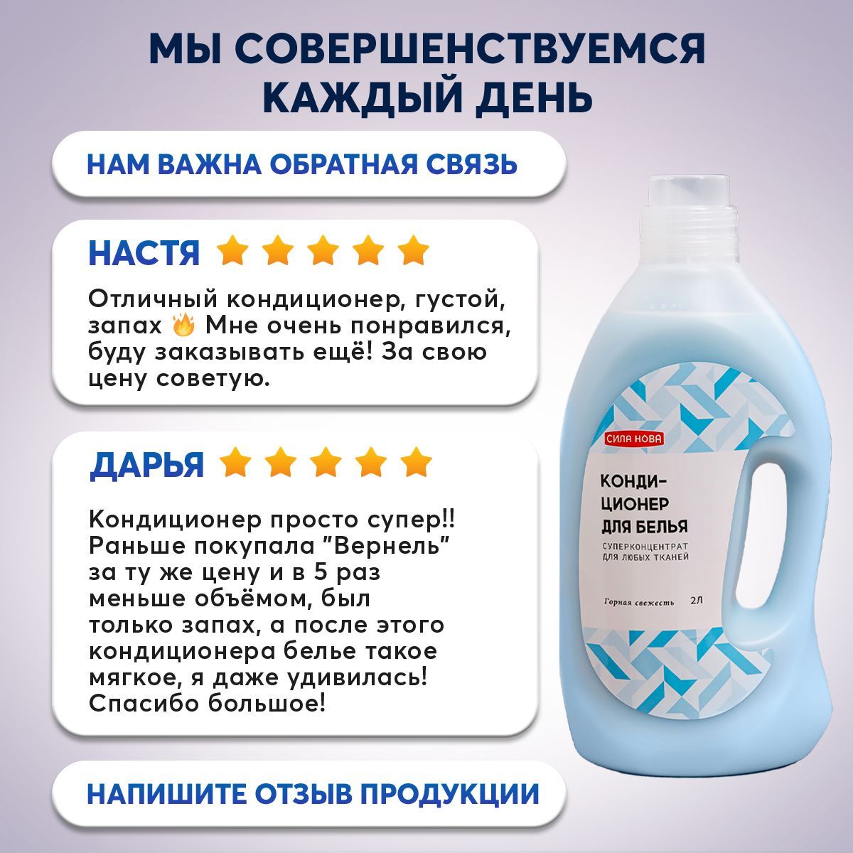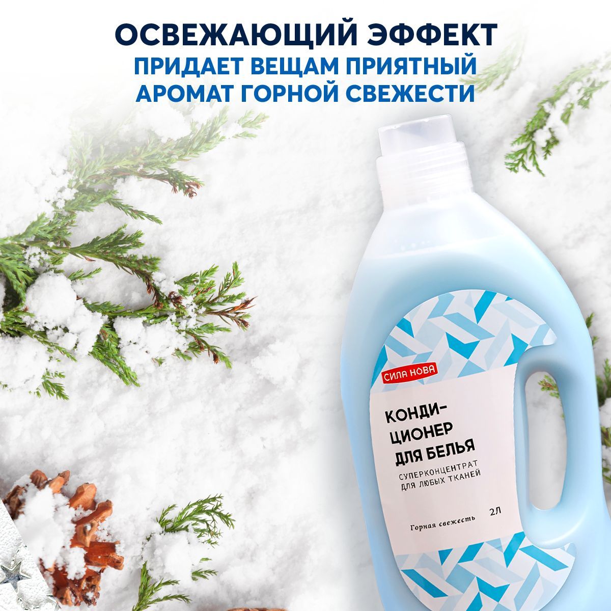Кондиционер для белья Горная свежесть 2 литра СилаНова(гипоаллергенный экологичный ополаскиватель для одежды, антистатик)